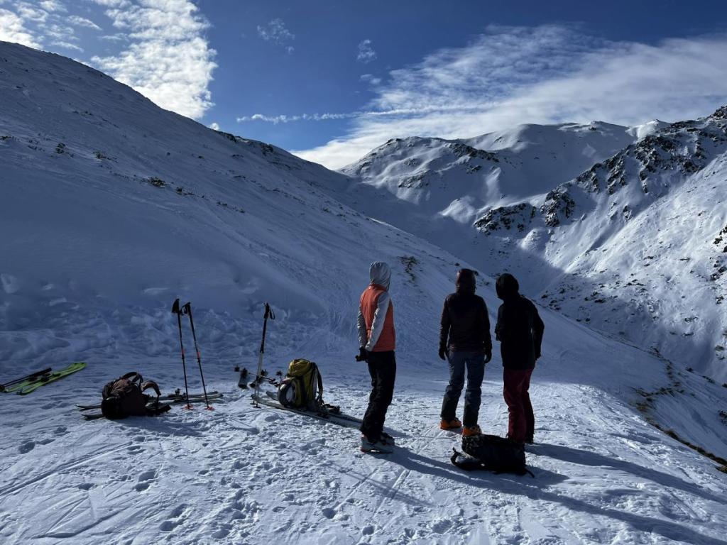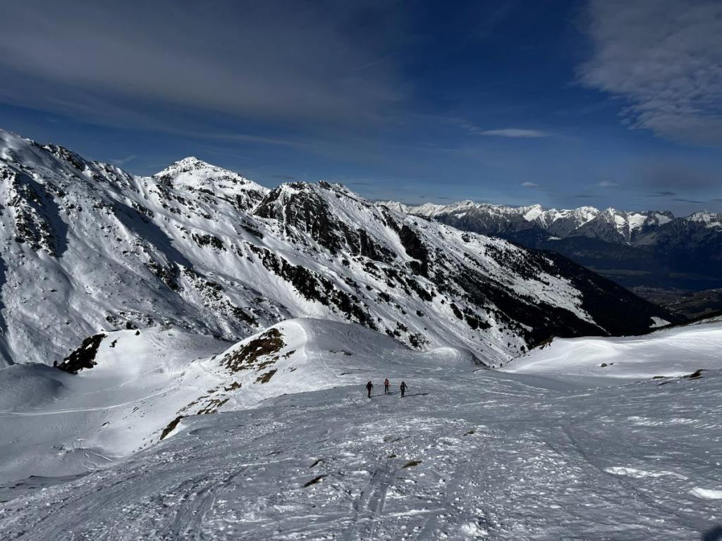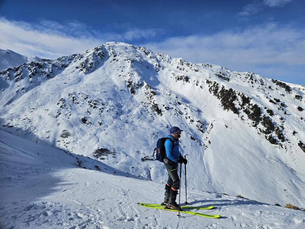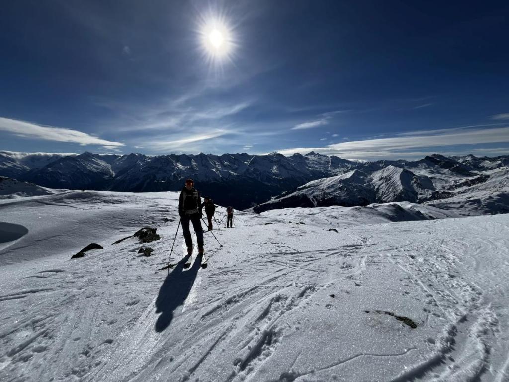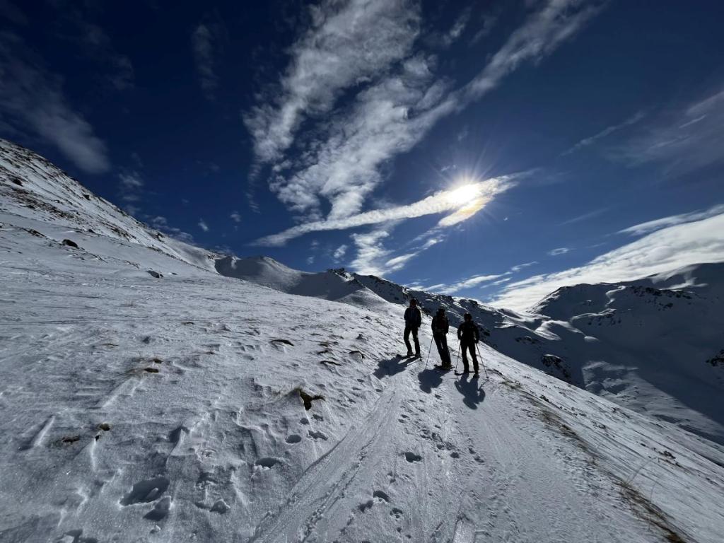 Der Hang, der „fast wie eine Skipiste abgefahren ist“, liegt nun vor uns und lässt uns schon freudig auf die Abfahrt denken. Doch noch müssen wir ein paar weitere Meter hoch.