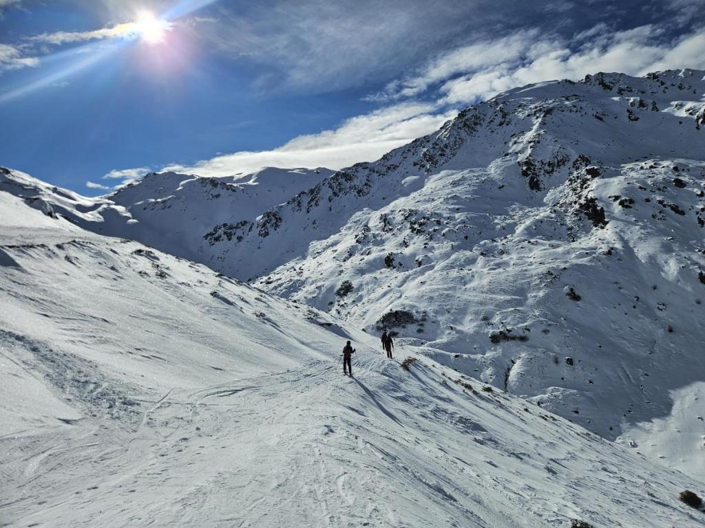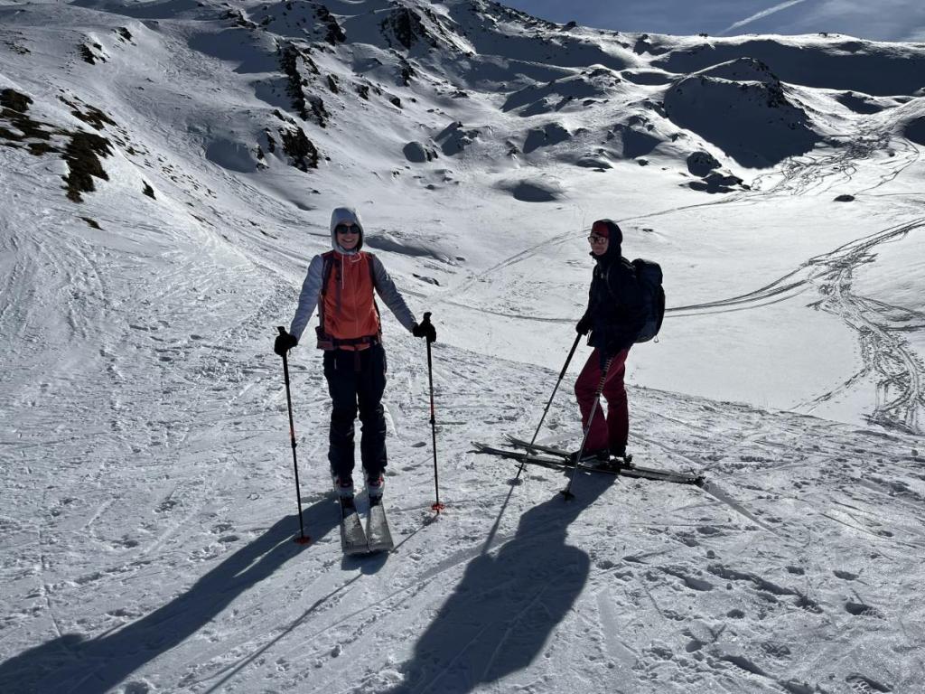 Überraschend gut können wir über den teils hart gepessten Schnee abfahren. Die Temperatur ist sehr angenehm.