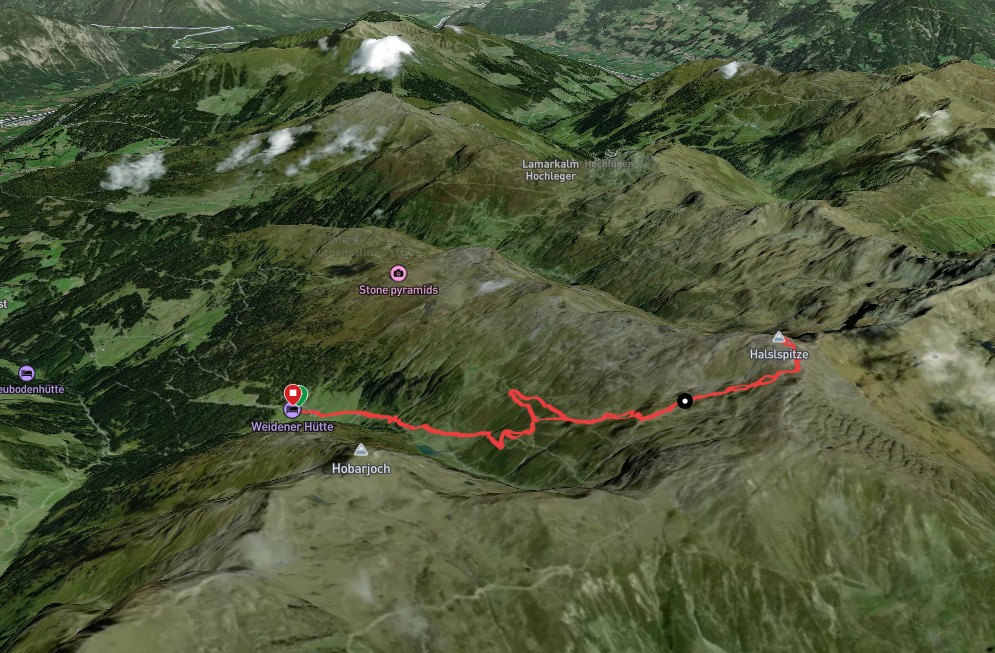 Nach Rücksprache mit dem Hüttenwirt Michael beschließen wir, als heutiges Ziel die Halsspitze zu besteigen.