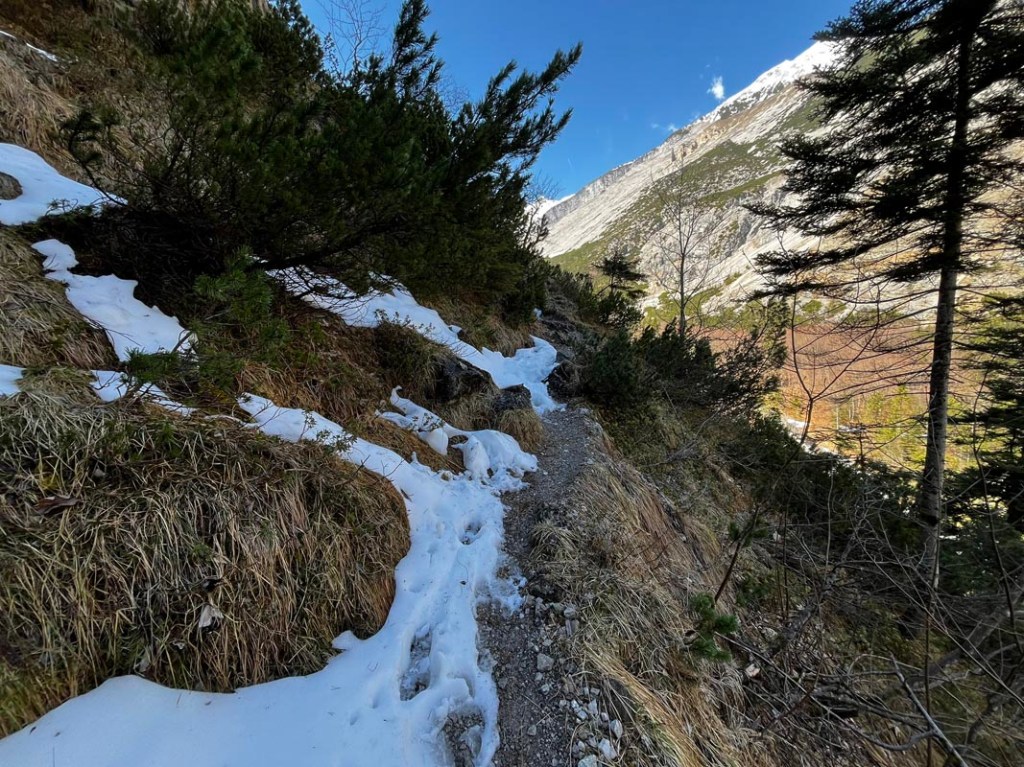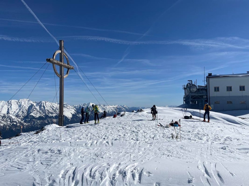 Bei der Talstation starten wir über die Olympiaabfahrt, der Schnee ist weich und erst mal sehr angenehm zu begehen.