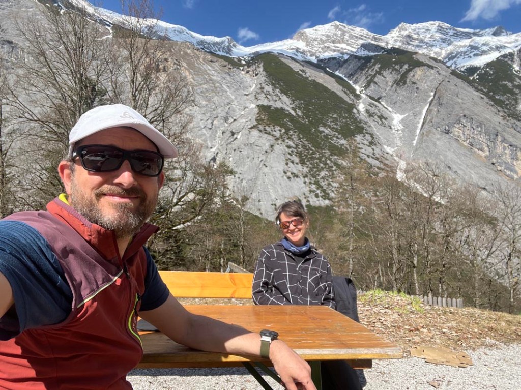 Schließlich erreichen wir die Bergstation mit dem köstlichen Restaurant „Das Kofel“. Papa ist auf den letzten Meter abgezogen wir eine Rakete und hat uns dafür einen guten Platz an der Sonne ergattert!