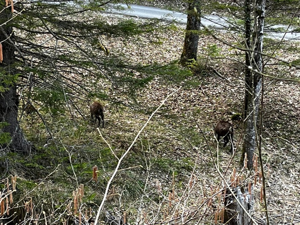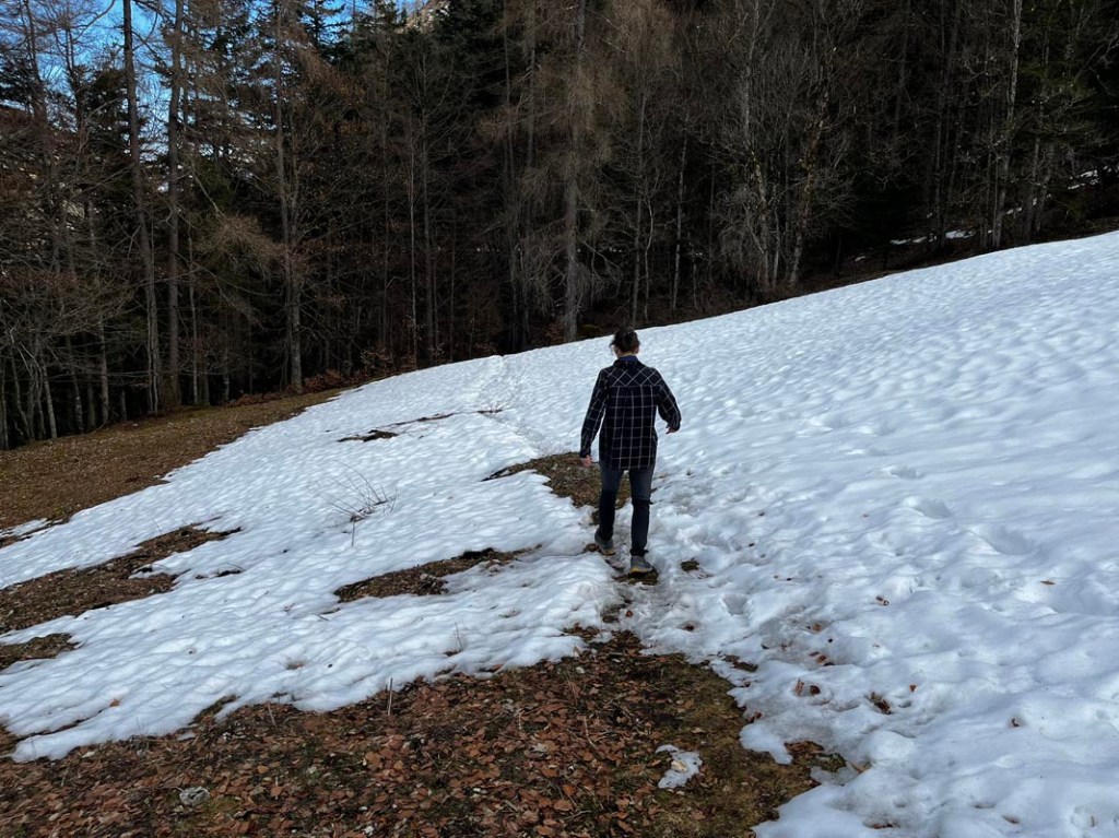 Unterwegs fallen mir immer wieder steif gefrorene Bergmolche auf, die auf der Piste liegen. Ich lege die kleinen Amphibien ins Grün am Pistenrand, in der Hoffnung, dass sie wieder auftauen. Wahrscheinlich liegt die Piste auf einer ihrer Wanderrouten…