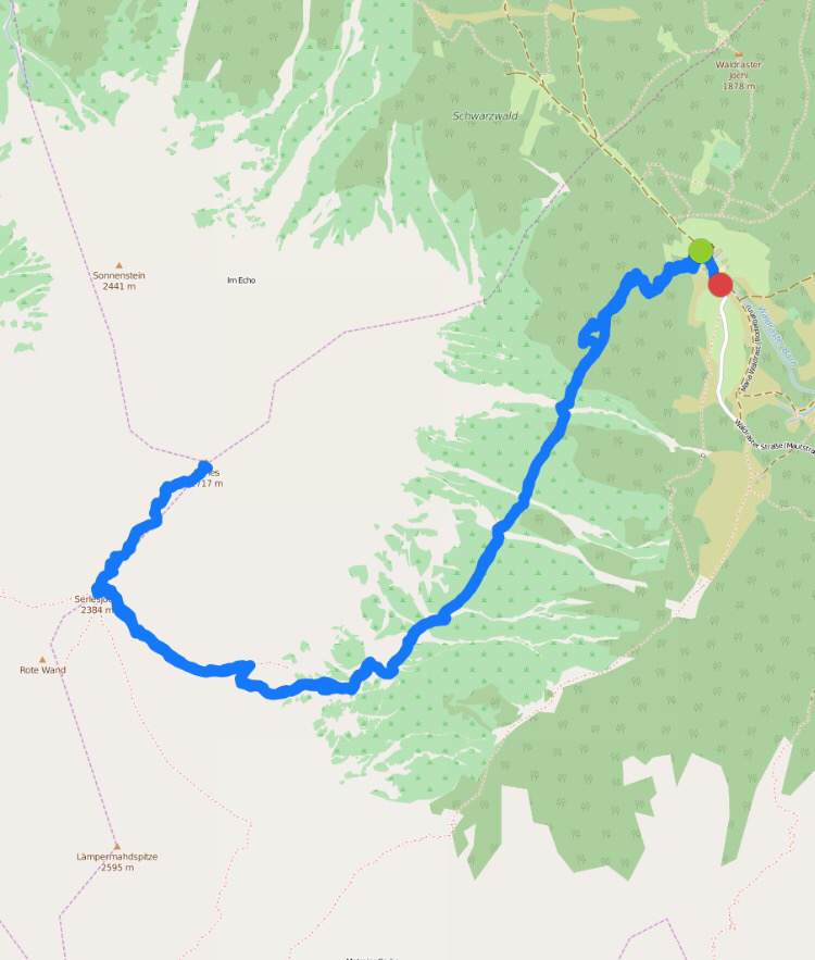 Da das Wetter ununterbrochen schön ist, geht’s heute nochmals in der Früh los, das Ziel ist die Serles. Und weil der Sonnenaufgang auf König Serles so wunderschön sein soll, gehen wir zeitig los. Zeitig ist bei den kurzen Tagen eh nicht so früh, um 4 Uhr verlassen wir das warme Heim und machen uns auf den Weg zum Kloster „Maria Waldrast“, 1.641m