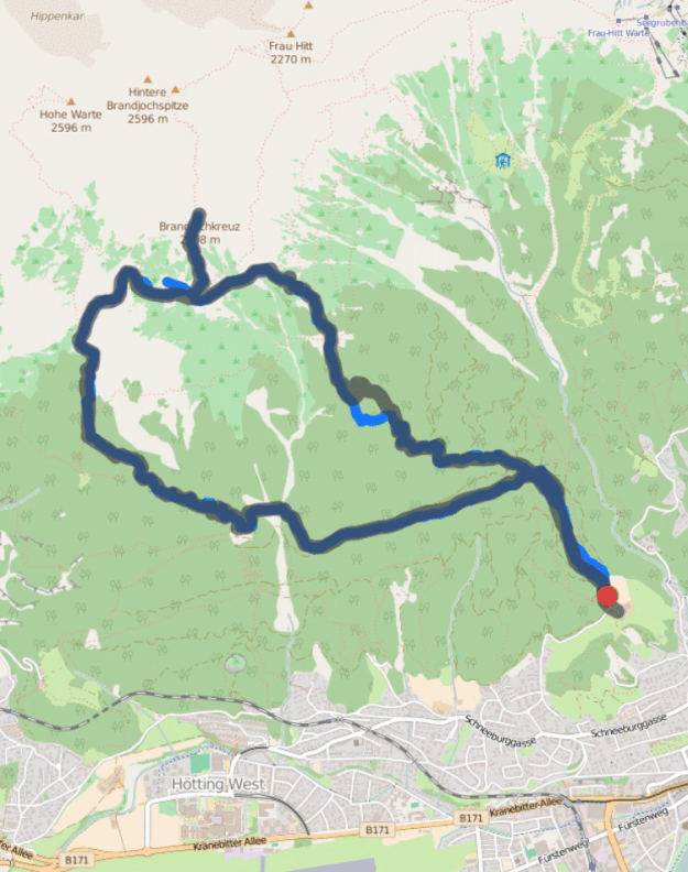 Im Anschluss gehe ich durch den Wald bis zum Höttinger Bild und weiter bis zum Parkplatz. Der letzte Teil des Weges ist unspekalulär, aber angenehm zum „auslaufen“…