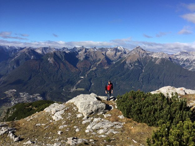 Bald erreichen wir den Grat, für gute Unterhaltung ist gesorgt. Wir beschließen, das Haiminger Kreuz noch mitzumachen, das zwar nicht direkt am Weg liegt, aber trotzdem einen Umweg wert ist.