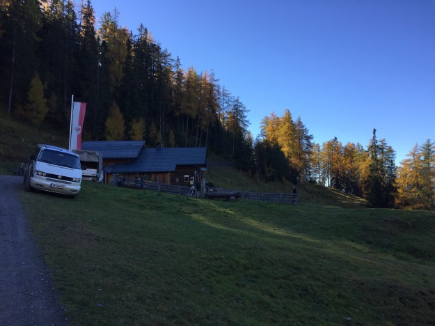 Michaela und Simon holen mich am Bahnhof ab, dann fahren wir zum Parkplatz bei der Karrösteralm (1.468m).