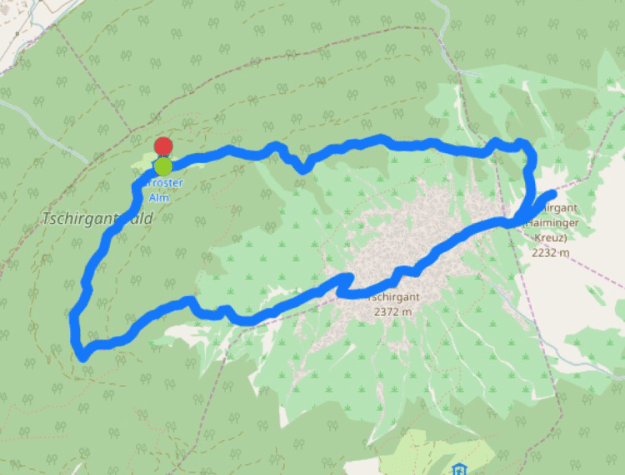 Dort starten wir los, über den Steig hinauf zur Spitze des Tschirgant. Dieser Berg hat mich schon länger fasziniert, heute soll eine Überschreitung gelingen.