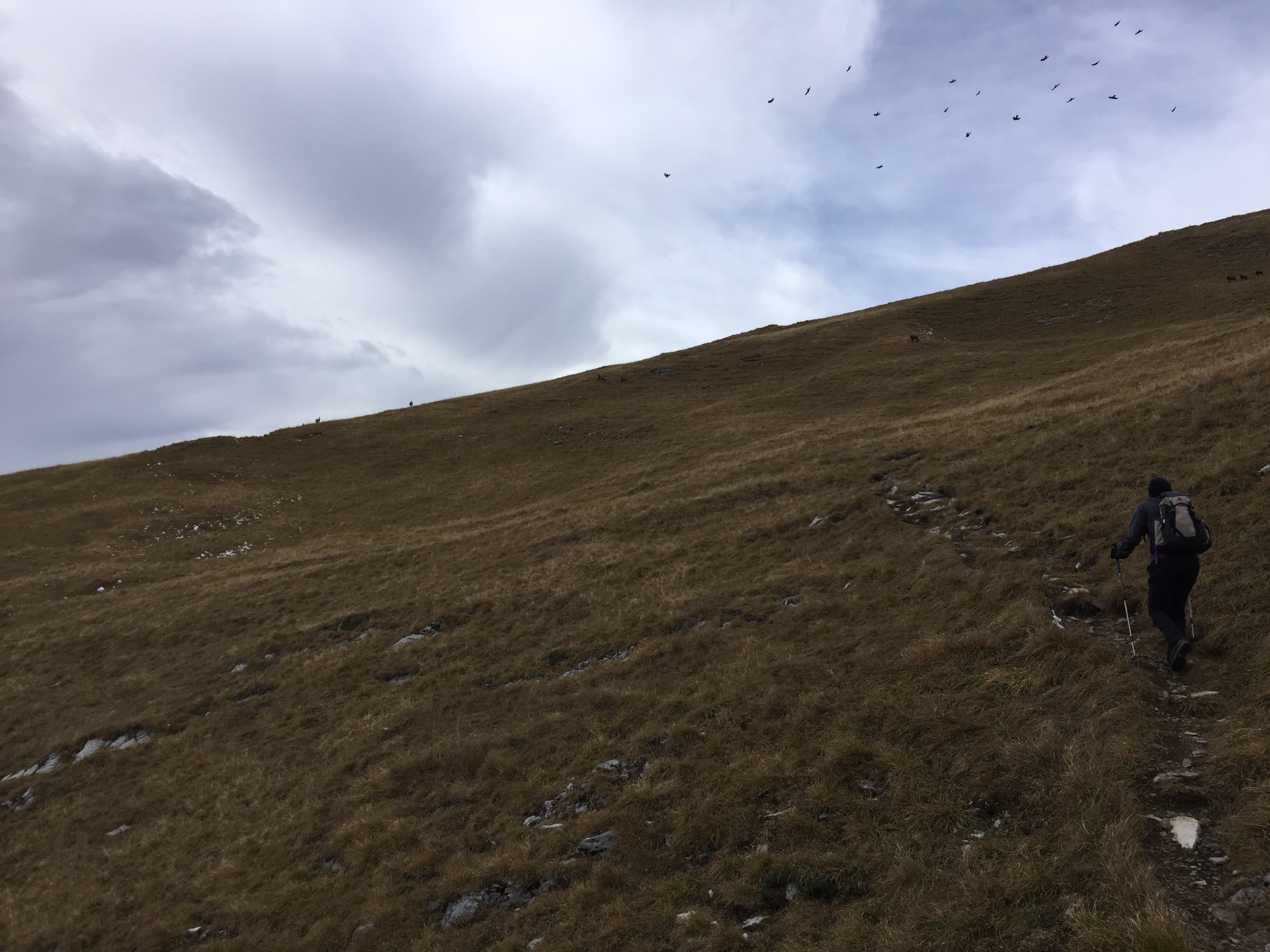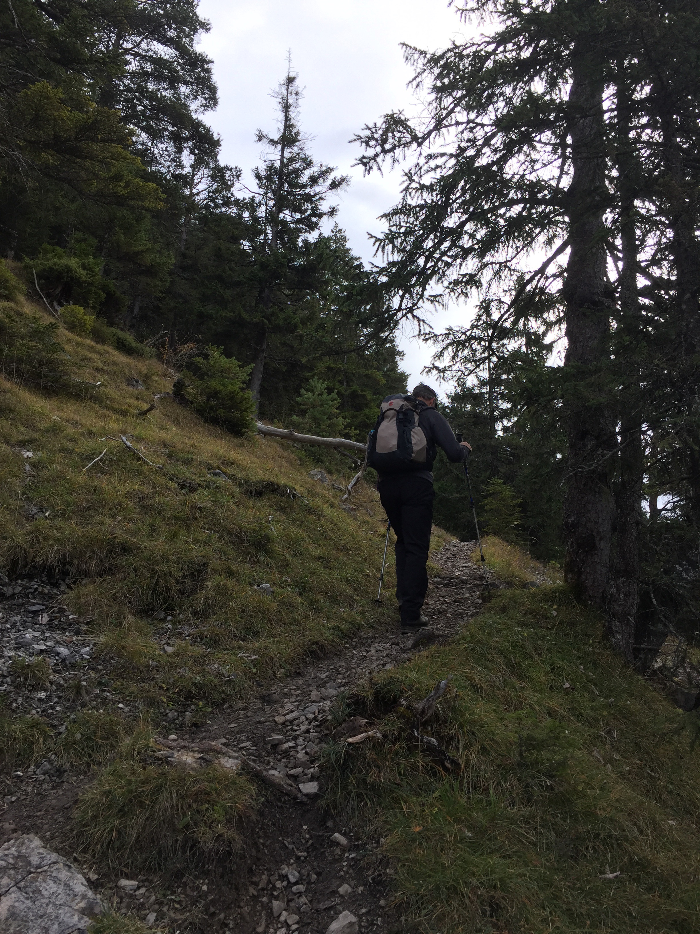 Die Waldgrenze ist bald erreicht, nun offenbart sich die Qualität dieser Tour. Die Aussicht ist dank hoher Wolken sehr gut. Allerdings hat der Wind auch aufgefrischt und bläst uns jetzt stattlichen in den Rücken.