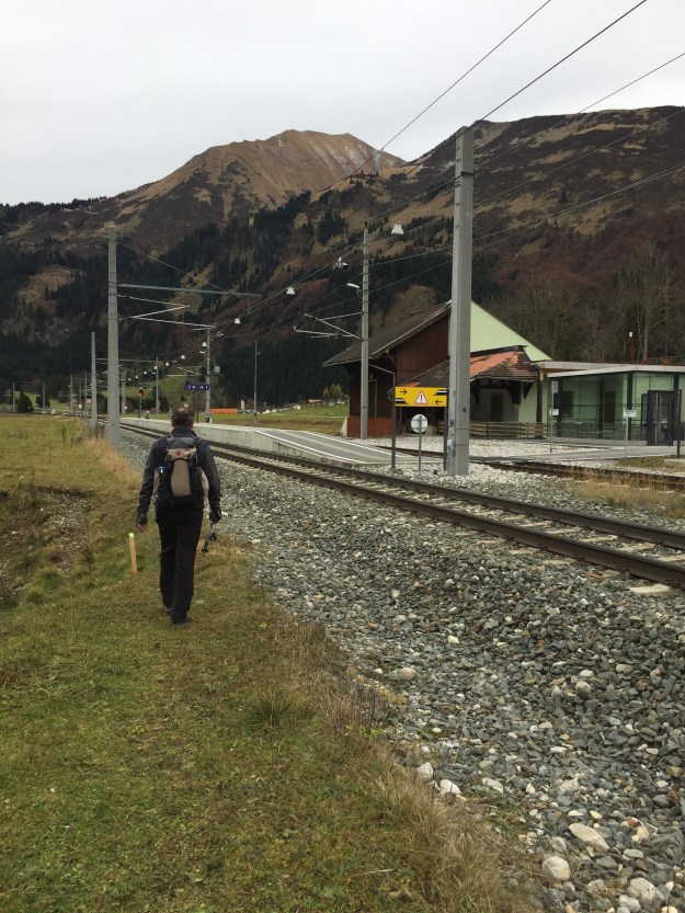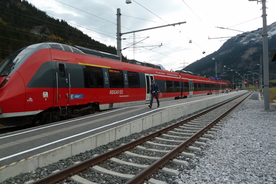 Bald erreichen wir den Talboden, gerade pünktlich für meinen Zug retour nach Aldrans. Ich verabschiede mich von Papa, dann fährt auch schon die Lokomotive ein.