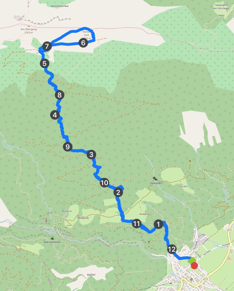 Ein Stück am Wolfsklamm-Kreuzweg entlang erreichen wir den Heuberg, und über diesen steigt der Steig fast gerade hinauf zum Stanser Niederleger (1.355m)
