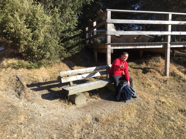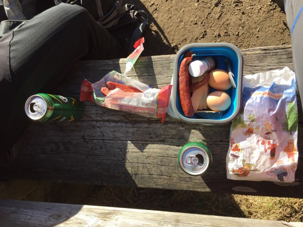 Dort beim kleinen Teich, der mittlerweile fast ausgetrocknet ist, machen wir Mittagspause in der Sonne. Richtig fein… und die Brotzeit schmeckt wunderbar!