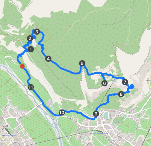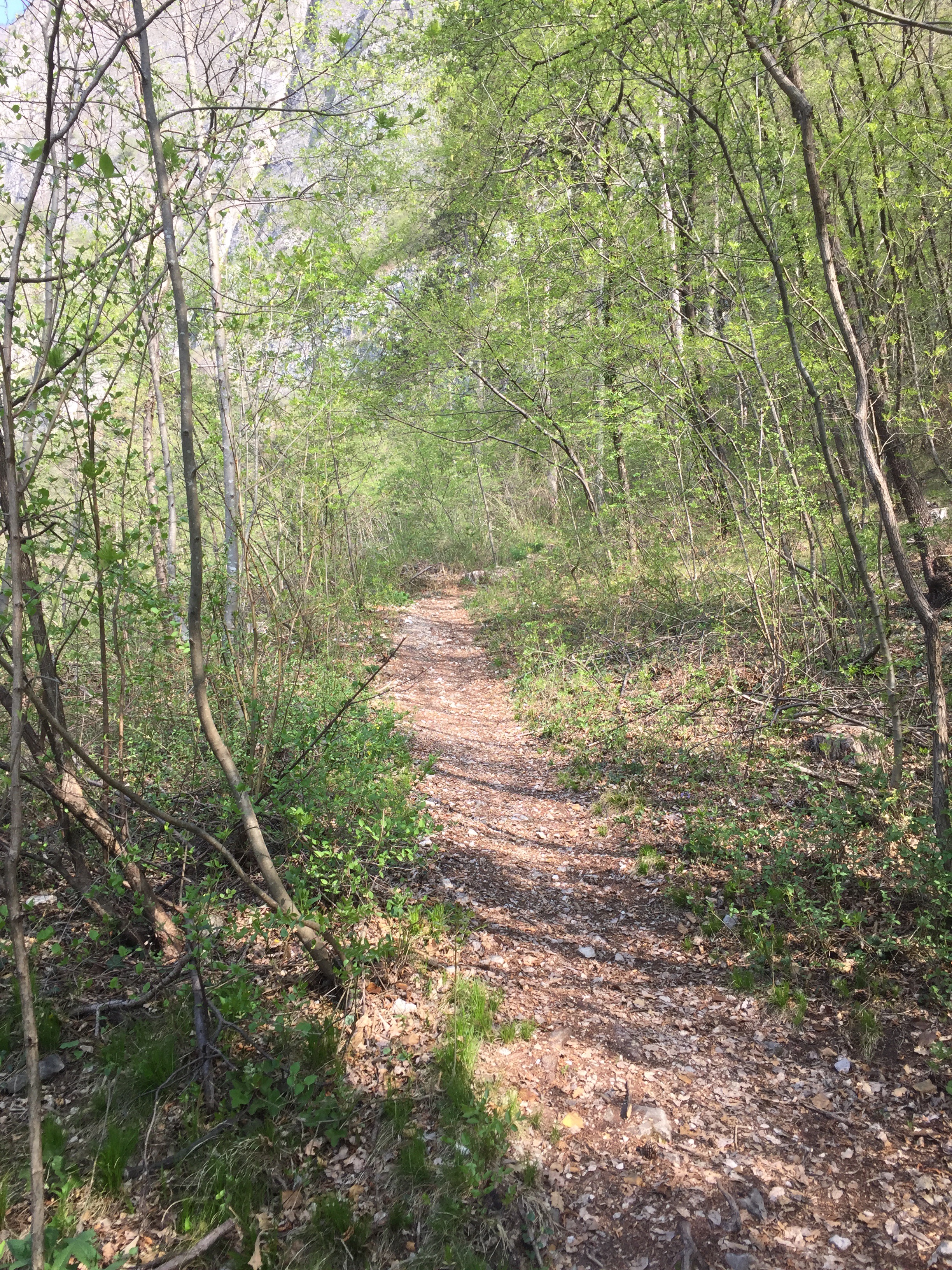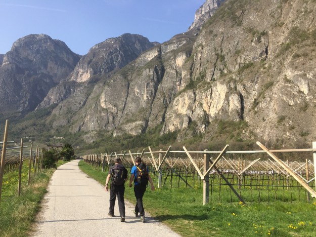 Dann entscheiden uns für den Abstieg und damit gegen die Seilbahn. Wir steigen einen steilen Steig hinunter nach Mezzocorona.