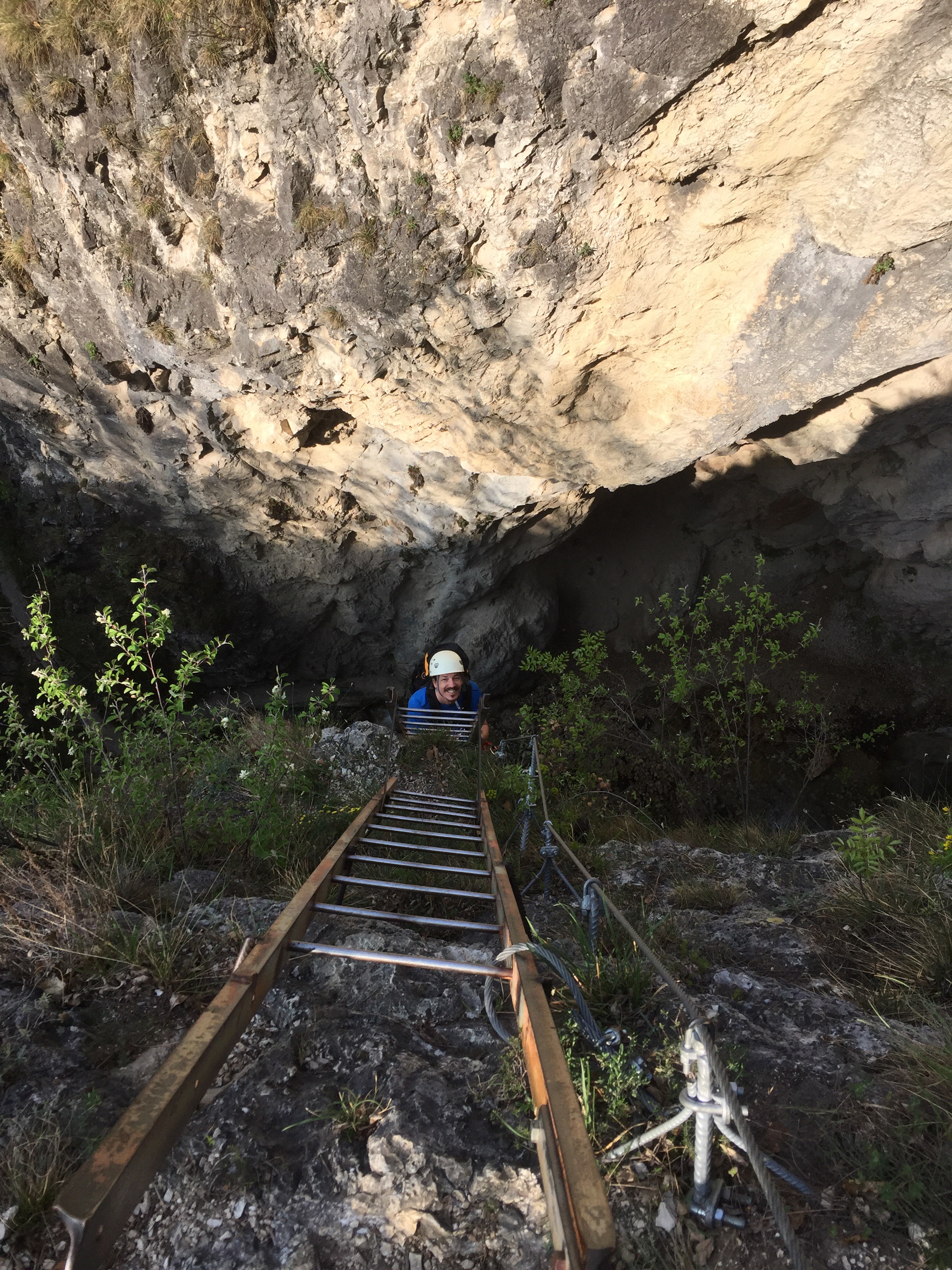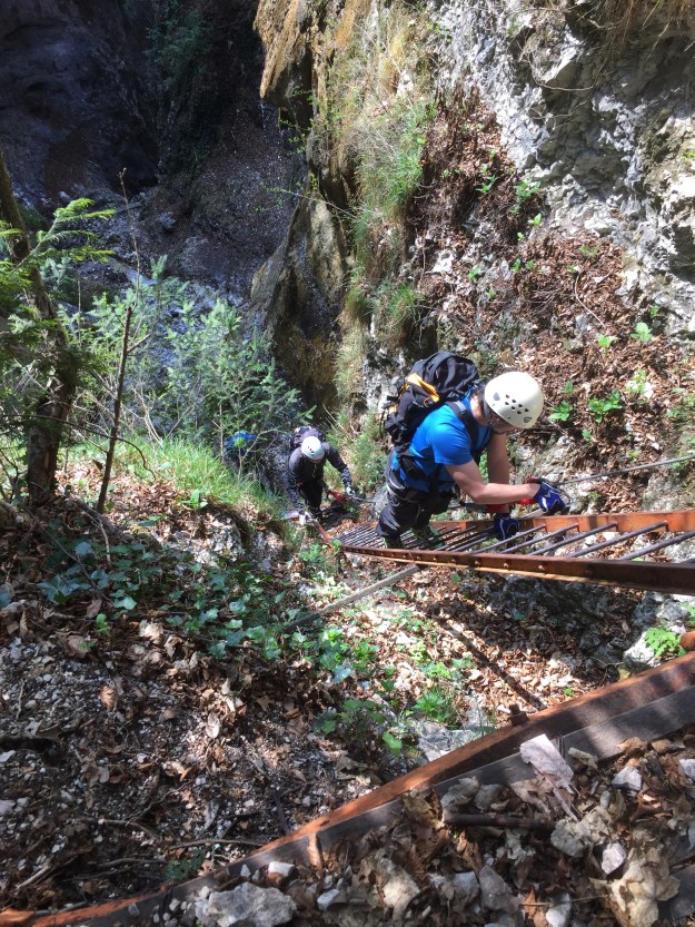 Eine Leiter führt uns schlußendlich aus der Klamm heraus, damit erreichen wir das Ende des Klettersteigs.
