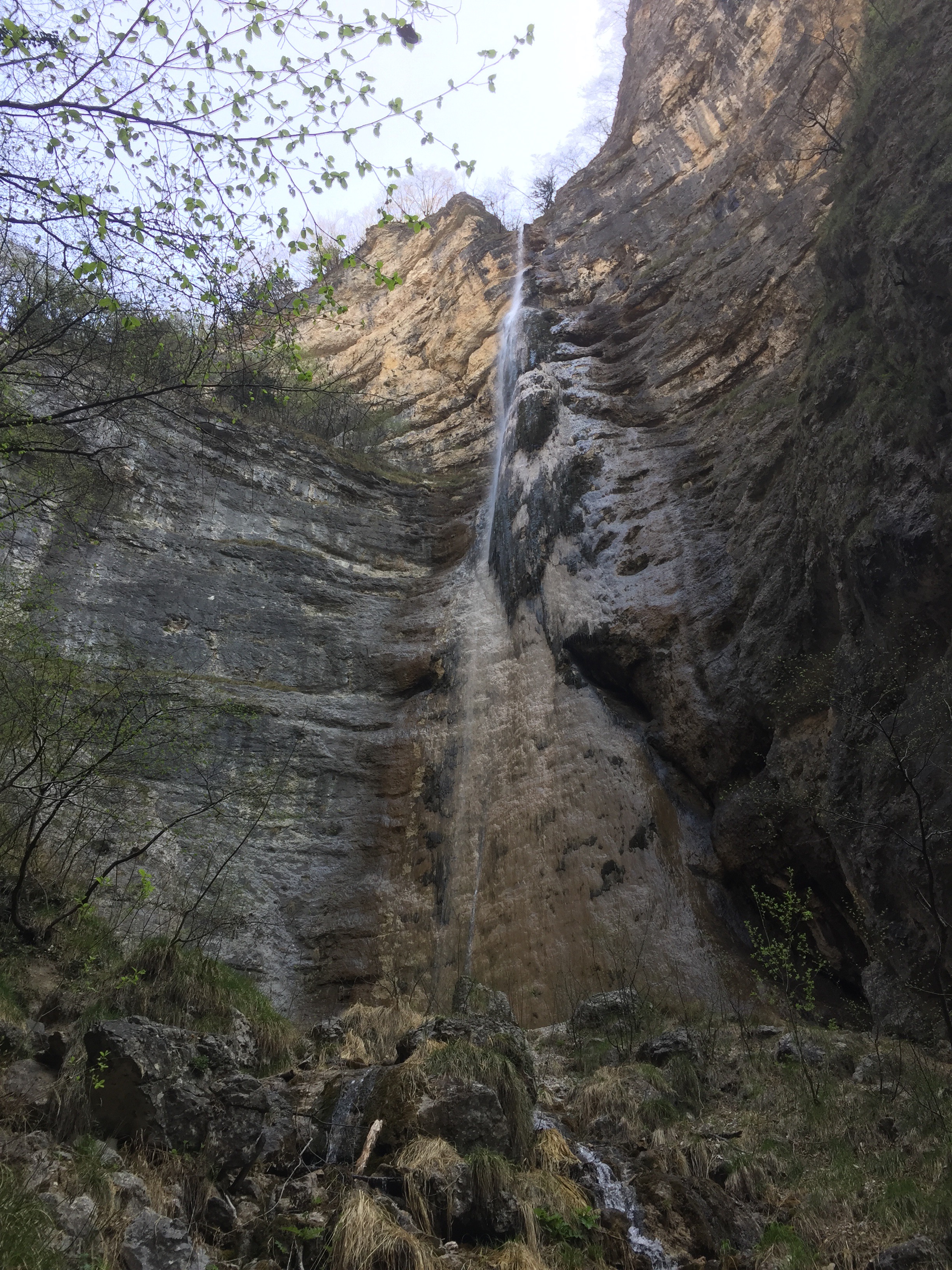 Ein weiteres Highlight ist der große Wasserfall im oberen Bereich der Schlucht, geschätzte 80m stürzt hier der Bach als Schleier in die Tiefe.
