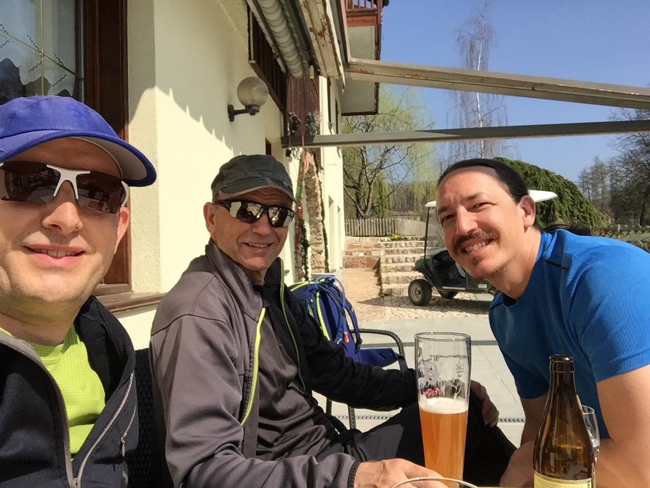 Wir richten uns ein, setzen uns auf den Balkon und trinken ein Bier auf unser Tagwerk. Am Abend spazieren wir noch nach Tramin und finden eine gemütliche Dorfschenke mit guten Essen und nettem Service. So gestärkt lassen wir den Tag ausklingen.