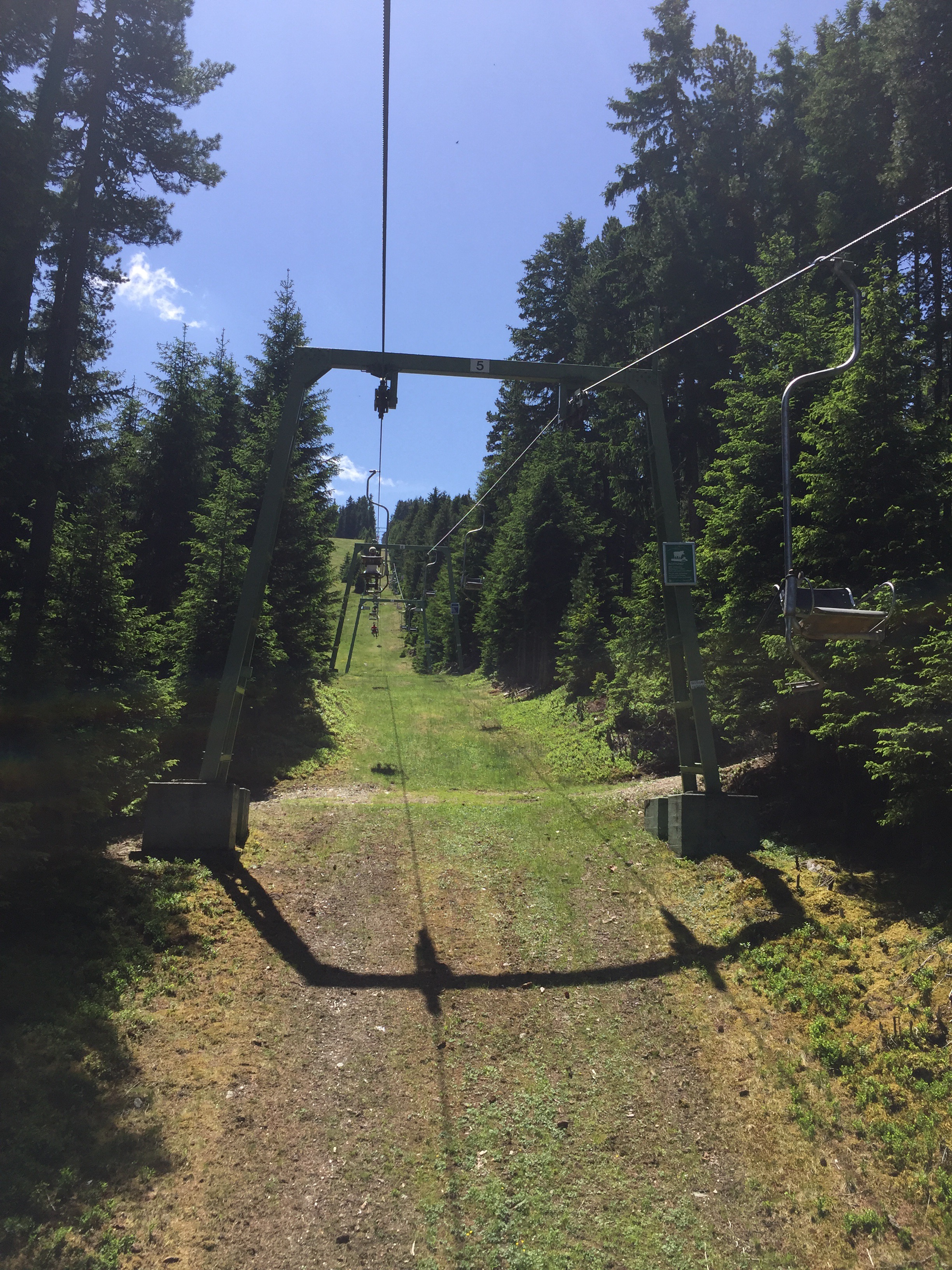 Als wir oben sind, beschließen wir, noch mit dem 1er Sessellist (jaja, sowas gibt es auch noch), hinauf zur Tulfeiner Alm zu fahren, da wir dort noch einen Cache zu bergen haben.