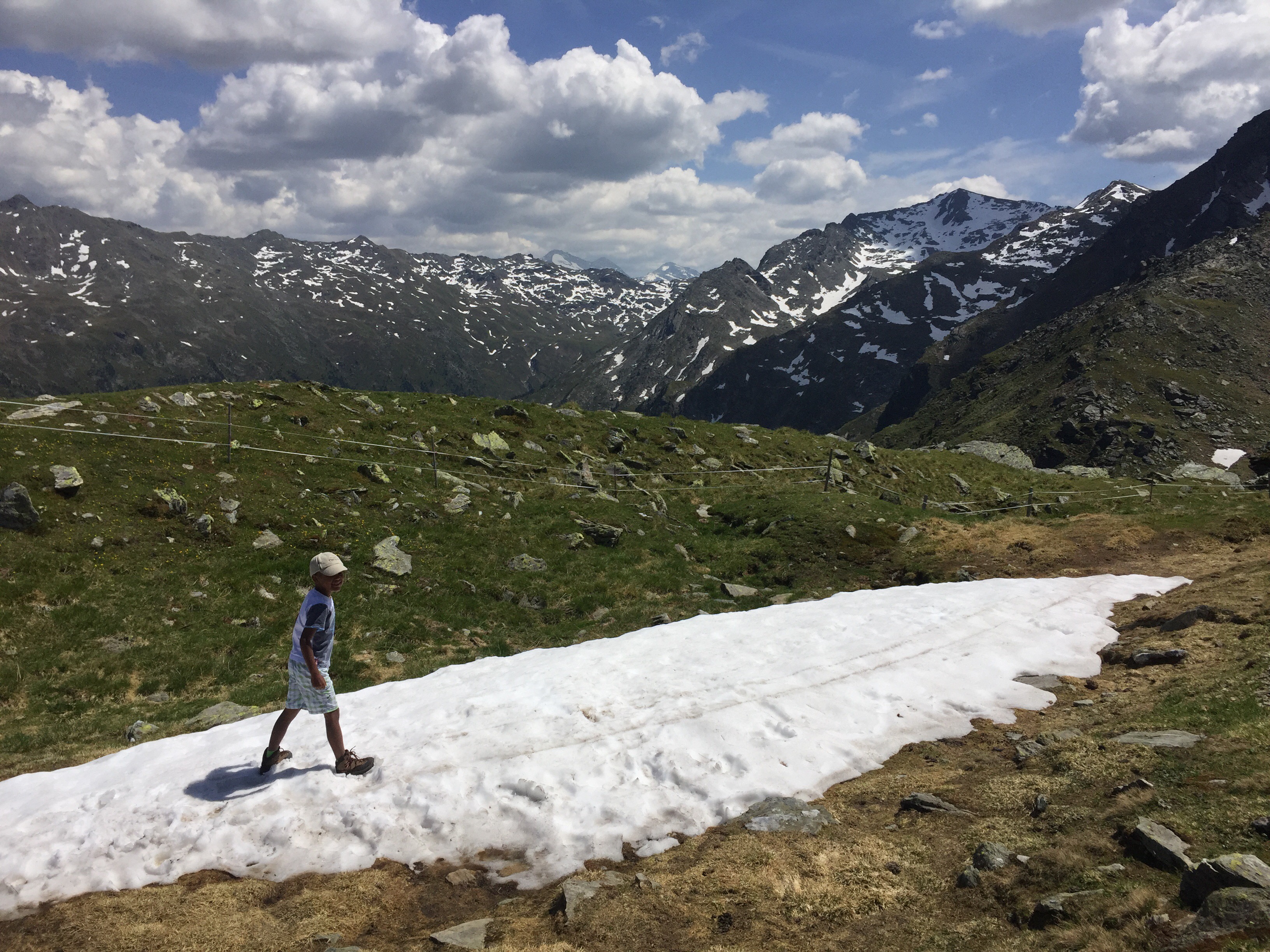 Den Rückweg machen wir über den Schartenkogelsteig, der eine schöne, abwechslungsreiche Wanderung zurück zur Bergstation der 1er Bahn. Teilweise liegt noch Schnee in den Mulden.