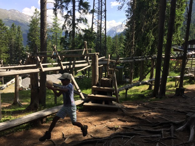 Wir fahren hinunten zum Halsmarter, dort gehts dann endlich für Letu in den Kugelwald. Das macht immer wieder Spaß. Ich habe mir ein Lesebuch mitgenommen und genieße die Kühle des Waldes.