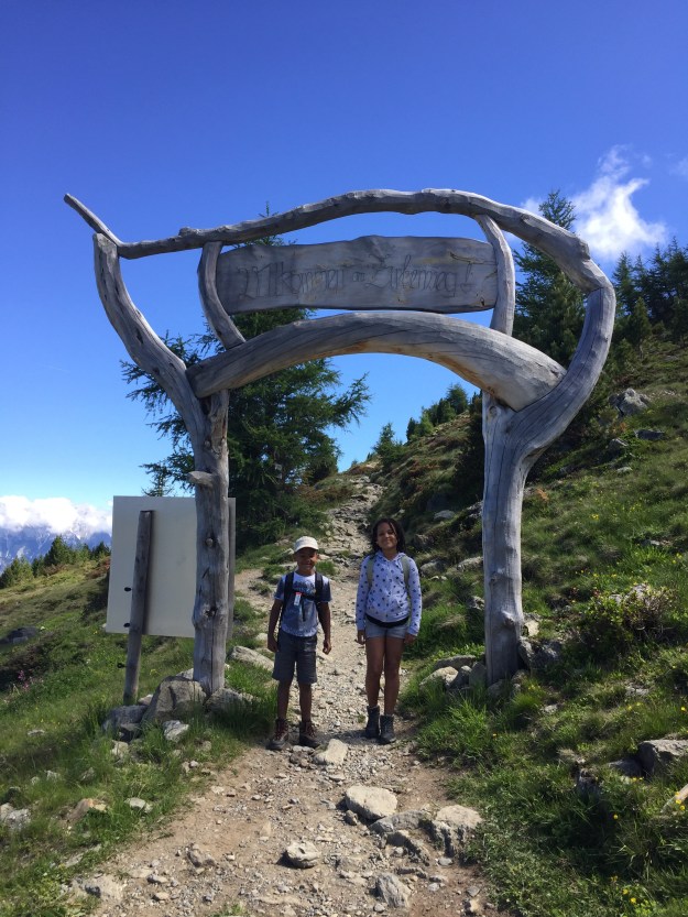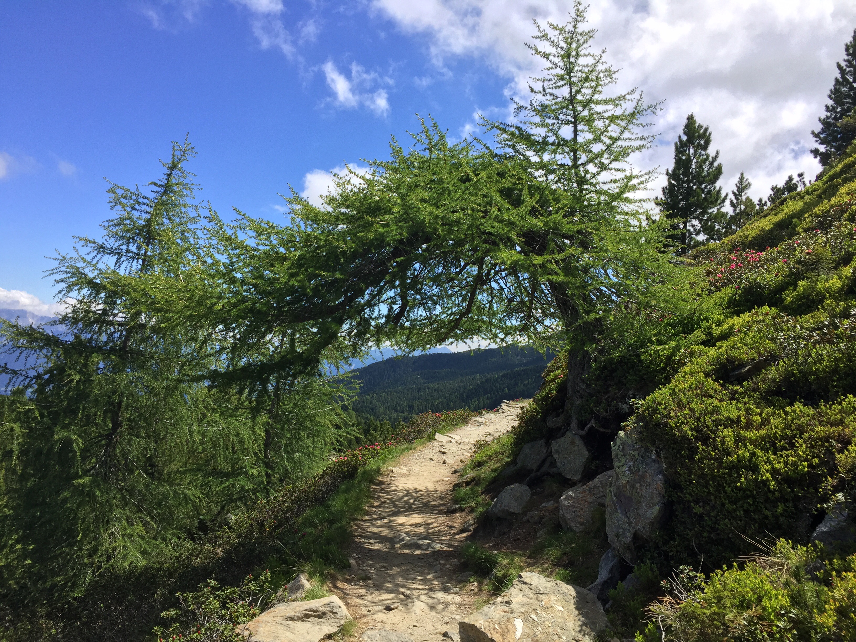 Das Eingangstor zum Zirbenweg ist immer wieder schön, der Weg entlang der schönen Alpenrosen noch schöner.