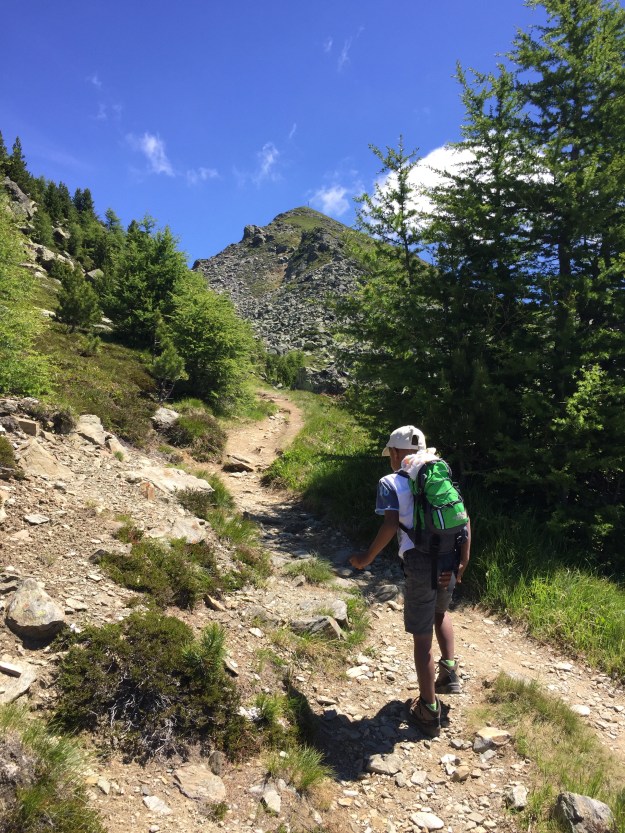 Von der Abzweigung geht es gleich mal ein paar Höhenmeter hinauf, die Letu super bewältigt. Dann müssen wir ein paar Stufen bewältigen, und schon stehen wir auf dem Sattel zur Viggarspitze.