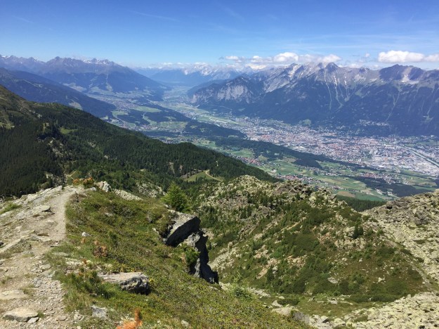 Nur eine kurze Rast gönnen wir uns, denn wir müssen weiter zur Tulfer Alm. Der Abstieg führt uns vorbei an der Neunerspitze, die wir heute auslassen. Die schöne Erhöhung werden wir aber bald mal angehen.