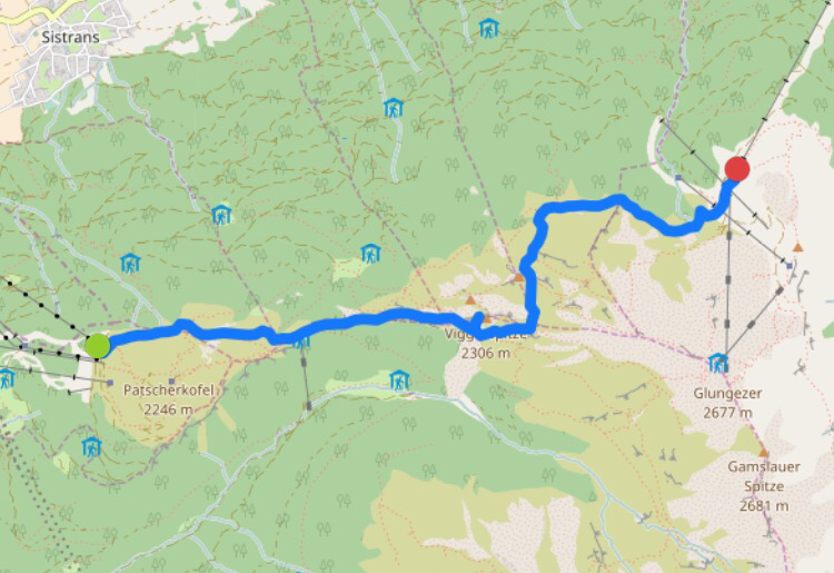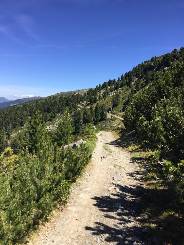 Wir wandern bis zum Abzweig zur Viggarspitze gemeinsam, dann trennen sich unsere Wege. Letu und ich wollen noch die Viggarspitze mitnehmen, der Gale, Lucy und Sara laufen den originalen Zirbenweg entlang. Auf der Tulfer Alm wollen wir uns wieder treffen.