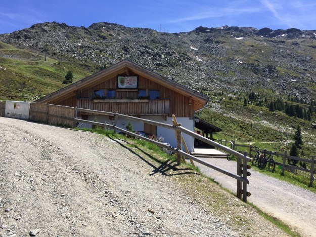 Nun geht es in feinem Auf und Ab hinüber zur Tulfer Alm. Zwei Geocaches haben wir auf dem Weg zur Alm noch auf dem Programm. Dann endlich sehen wir unser Ziel.
