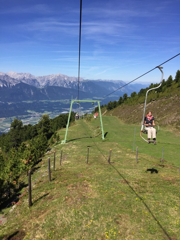Wir genießen die Sonne, trinken Bier und genießen die Aussicht. Leider müssen wir uns irgendwann von der schönen Umgebung verabschieden und wieder ins Tal. Wie mit Letu vor Kurzem geht es wieder zuerst mit der lustigen 1er-Sesselbahn, ab Halsmarter mit dem 2er Sessellift ins Tal.