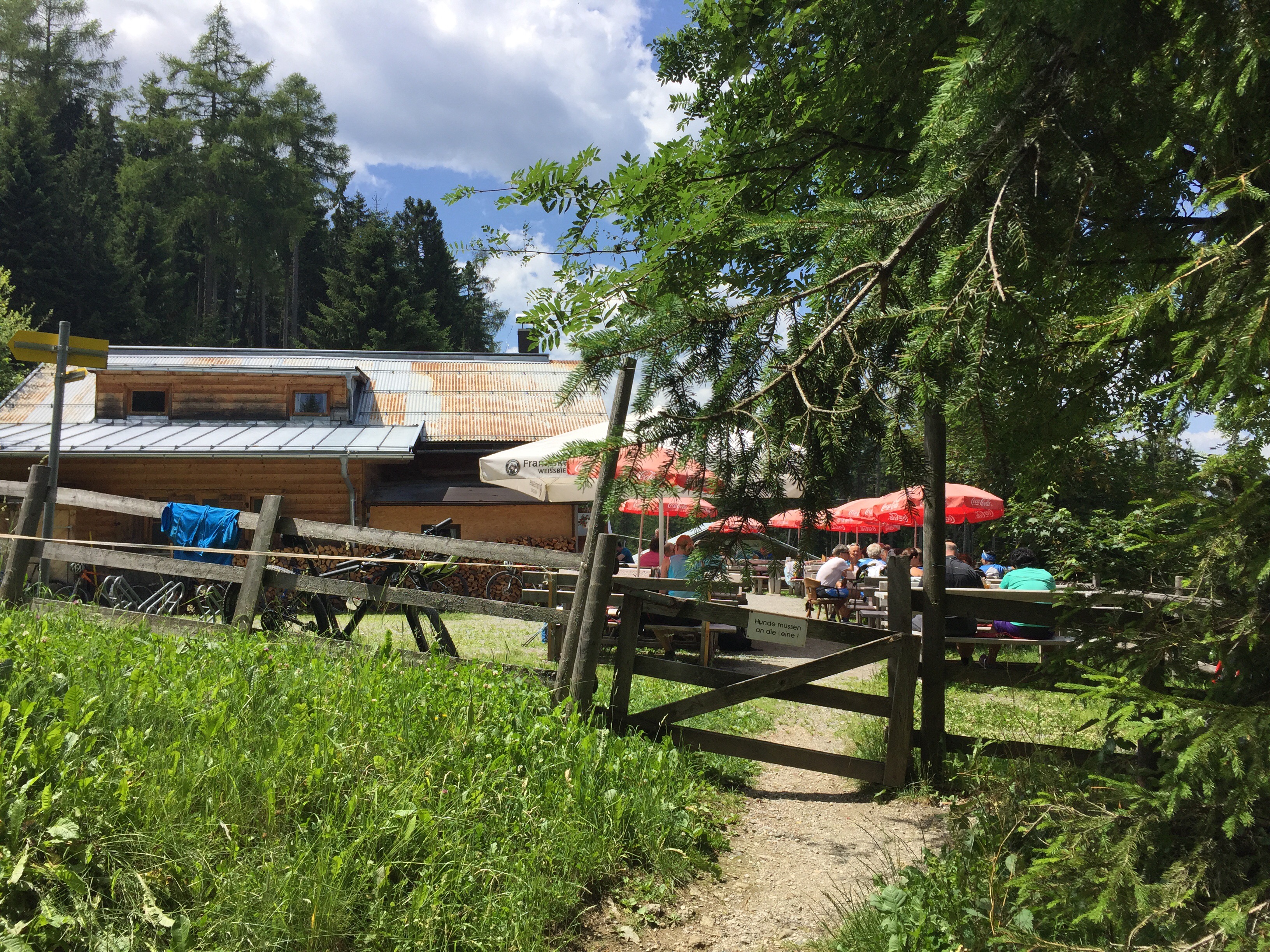 Nach ca. 1:20 h erreichen wir die Hütte, sehr zur Freude der Kinder. Ein kleiner Spielplatz lädt zum Spielen ein, wären da nicht zwei wirklich freche Buben.