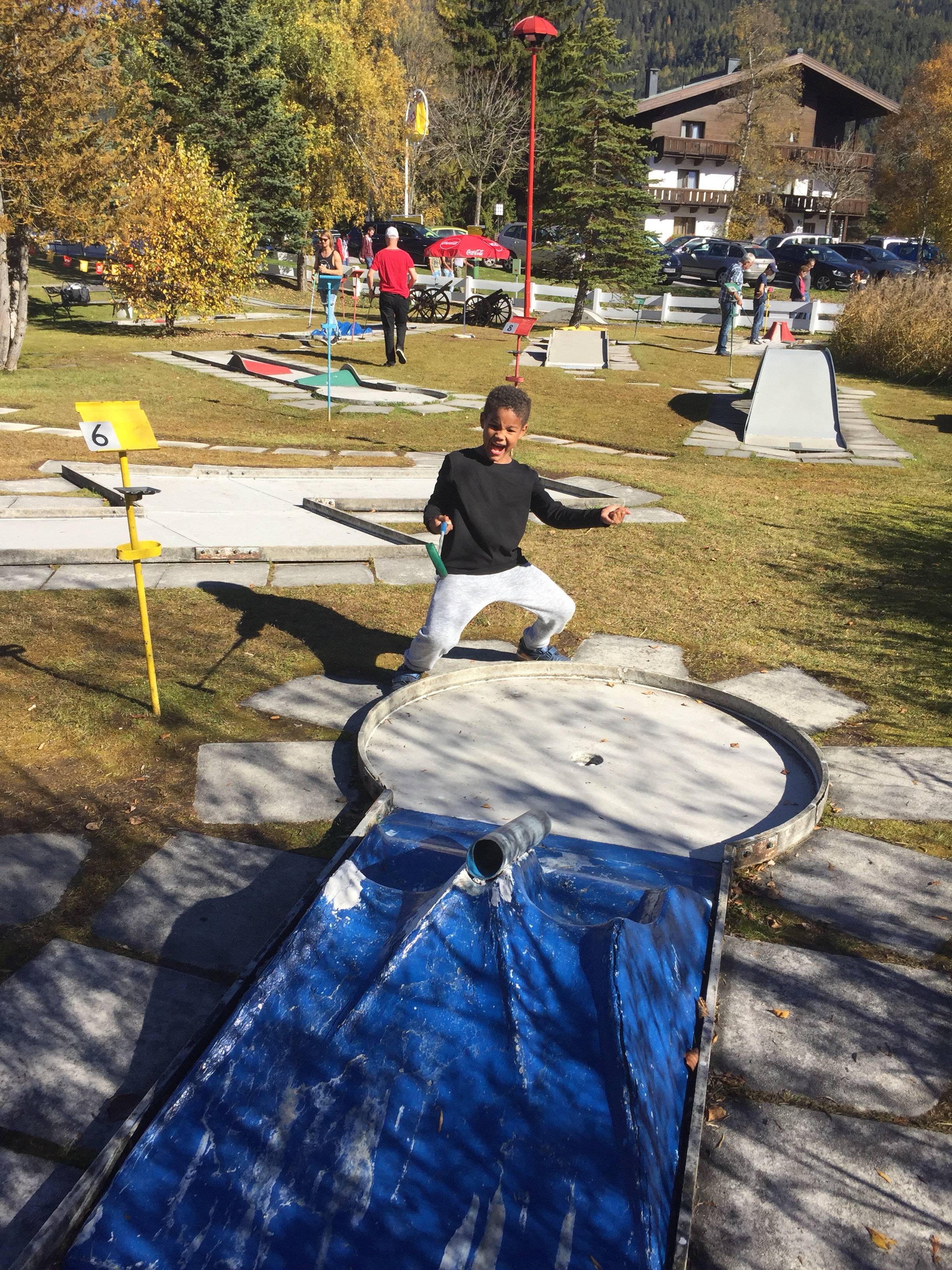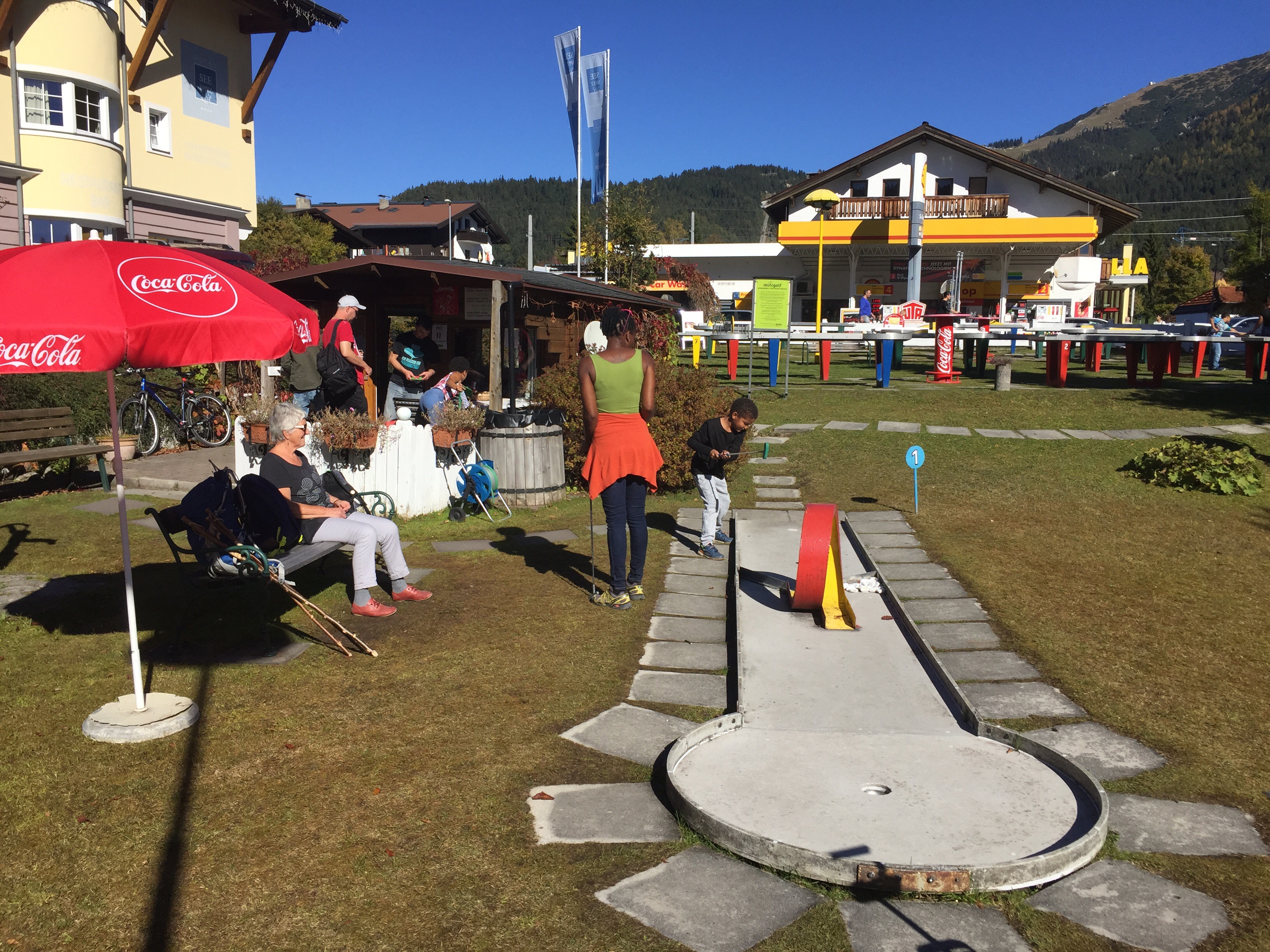 Nach der Wanderung spielen wir noch eine Runde Minigolf, Letu stellt sich als richtiges Talent heraus.