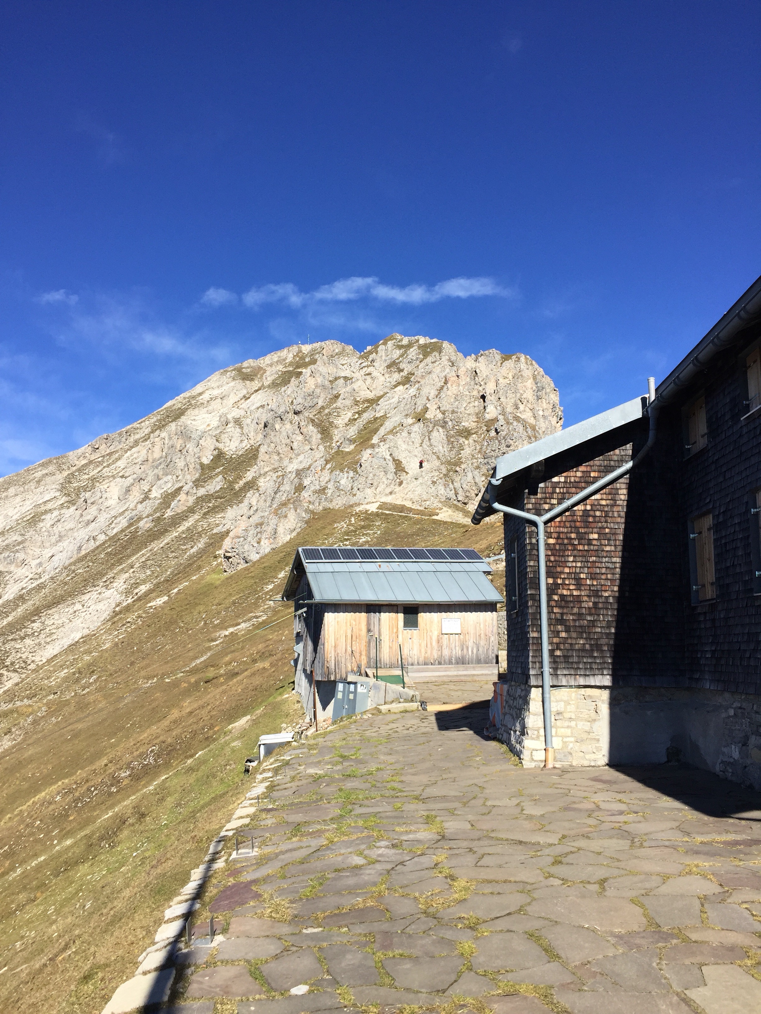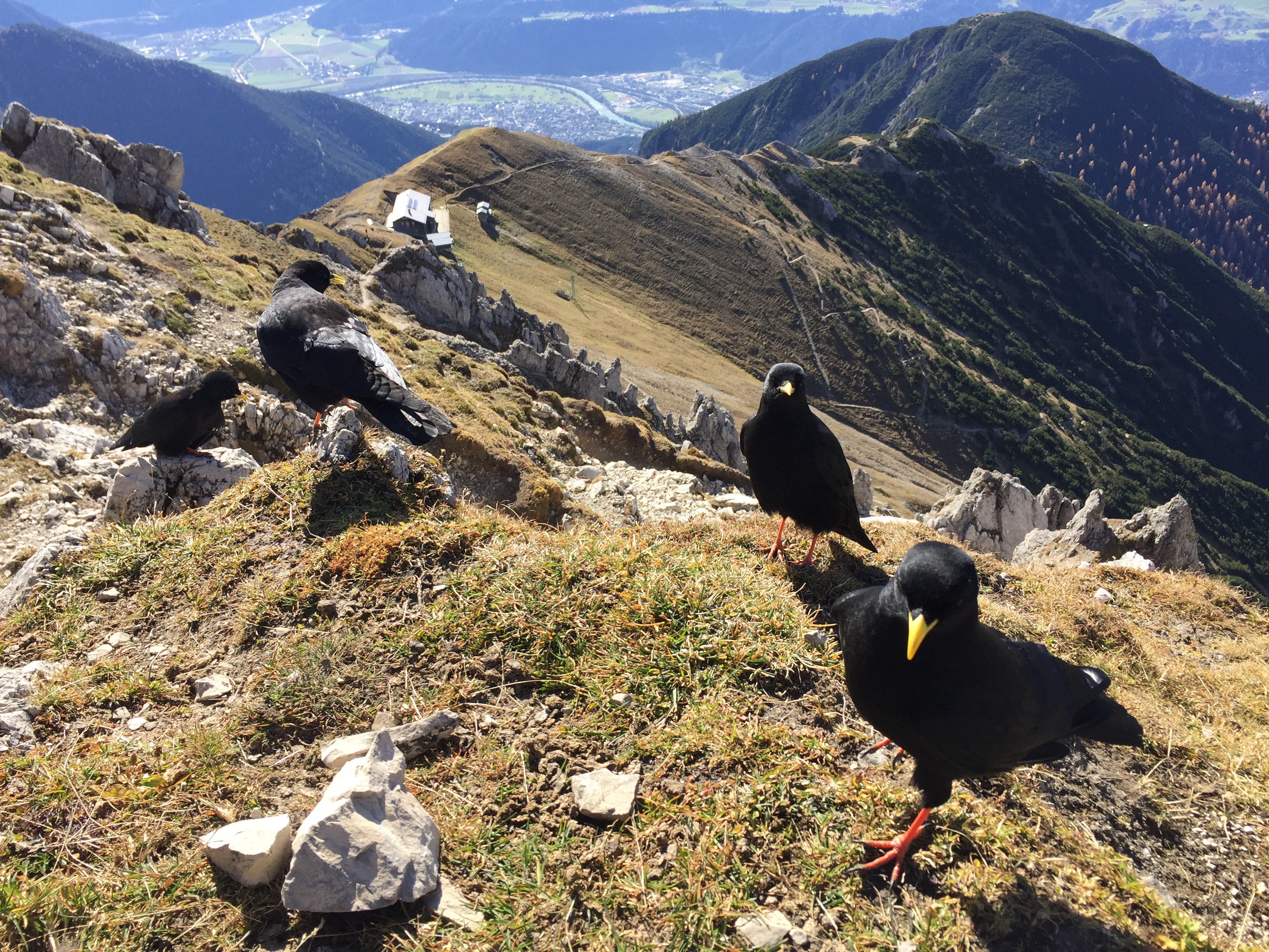 Ich mache eine ausgedehnte Pause am Gipfel, füttere die Dohlen, die mir sprichwörtlich aus der Hand fressen. Manchmal tut das richtig weh, dank der Krallen.