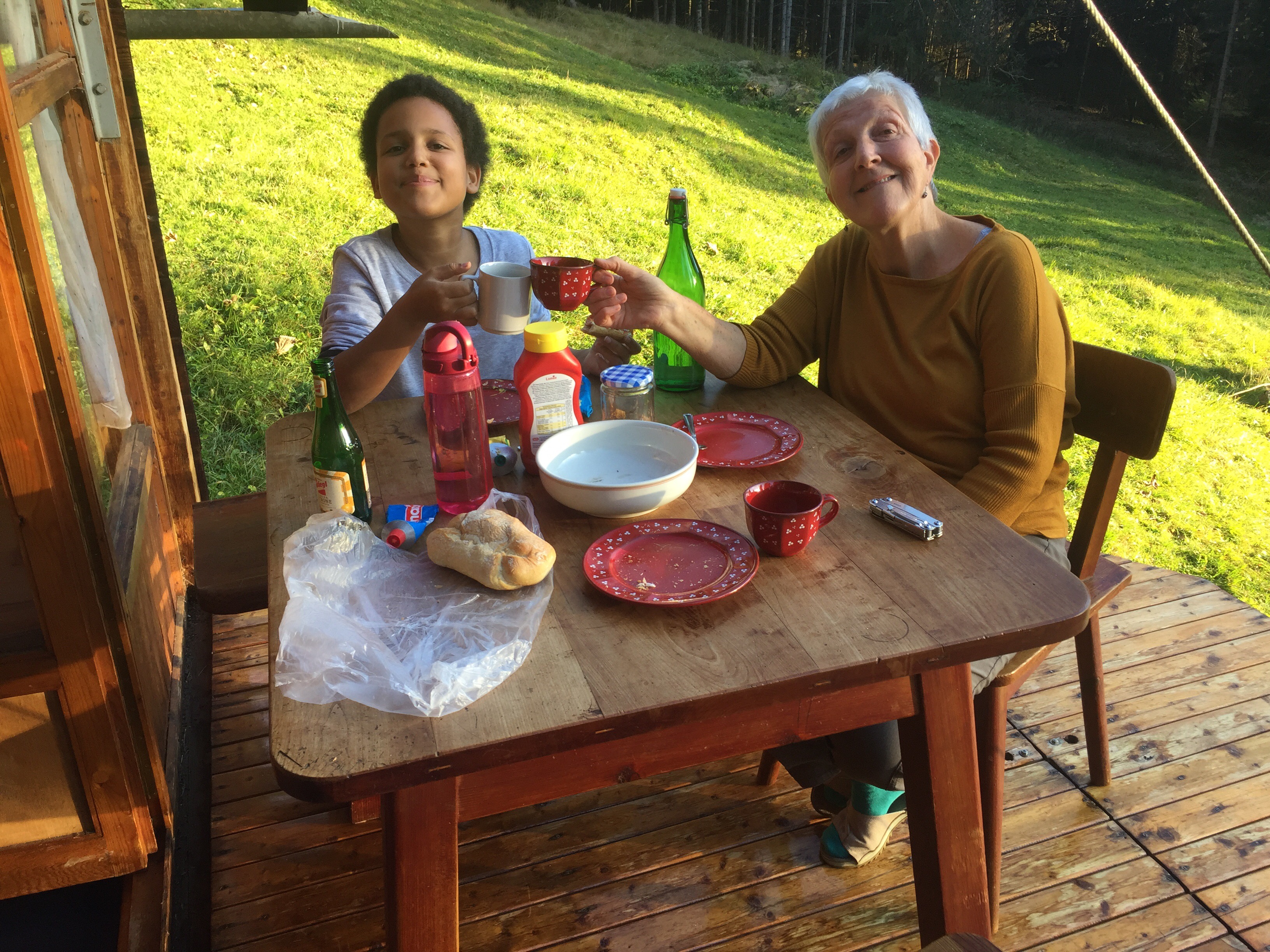 Am nächste Morgen ist dann das Wetter 180° verdreht. Die ersten Regentropfen prasseln schon auf das Dach, und irgendwie ist es draussen richtig ungemütlich. Nicht aber in der Hütte, wo schon wieder der Ofen danke Mama seine feine Wärme ausstrahlt.