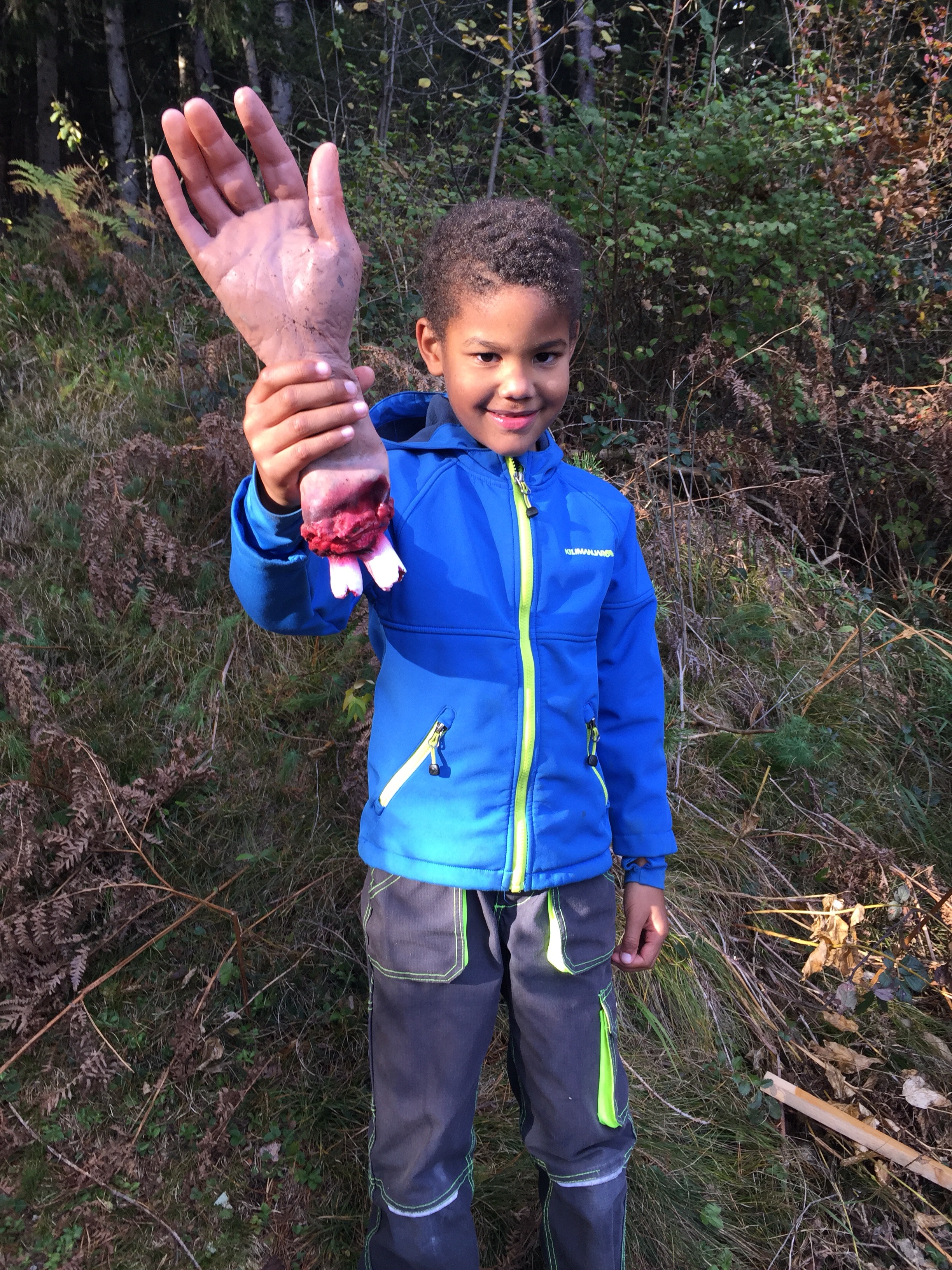 Und natürlich klauben wir unterwegs die eine oder andere „Halloween-Dose“ auf, die hier ausgelegt wurde.