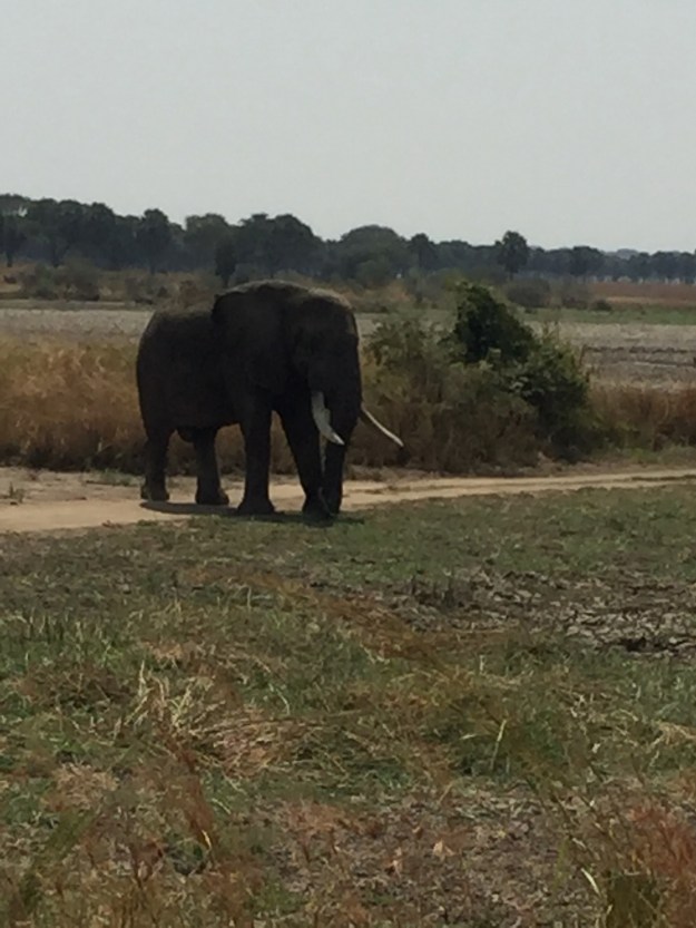 Als nächstes erreichen wir Pakwatch, dort müssen wir nochmals über den Albertnil fahren. Kurz vor der Brücke sichten wir unseren ersten Elefanten, direkt neben der Strasse.