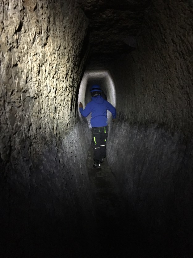 Ein wenig gruslig ist es hier drinnen schon, aber im Gegensatz zu den „guten alten Zeit“, als die Bergleute hier mit dem Geleucht die Luft verpesteten, ist heute das Wetter im Berg sehr angenehm, und auch ein Stück wärmer aus draussen.