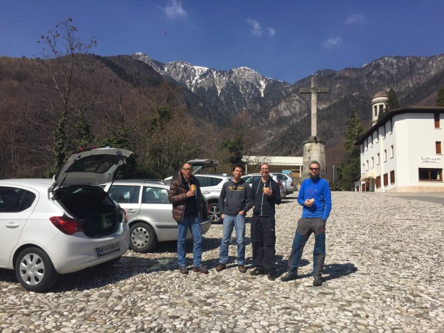 Im Tal, bei der Kirche „Santuario della Beata Vergine del Covolo“ haben wir geparkt, direkt daneben steht ein kleines Gasthaus, die „Trattoria Al Covolo“. Dort genehmigen wir uns ein Bier auf die schöne Wanderung und sprechen über die nächsten zwei Tage.