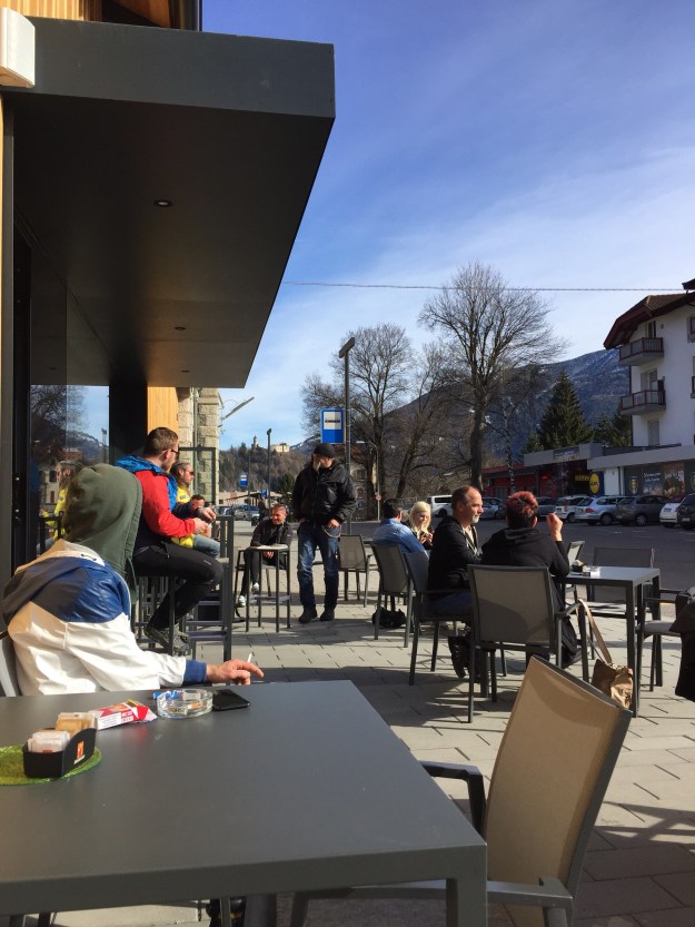 Wir fahren mit dem Zug über den Brenner, auf der Passhöhe müssen wir den Zug wechseln. Trotzdem ist die Fahrt gefühlt mindestens gleich schnell wie mit dem Auto.