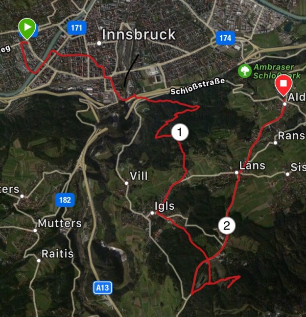 Die Abfahrt nach Aldrans ist wieder einmal ein Riesenspaß, es geht nur noch abwärts und das einzige Hindernis sind die langsamen Autos und Postbusse…