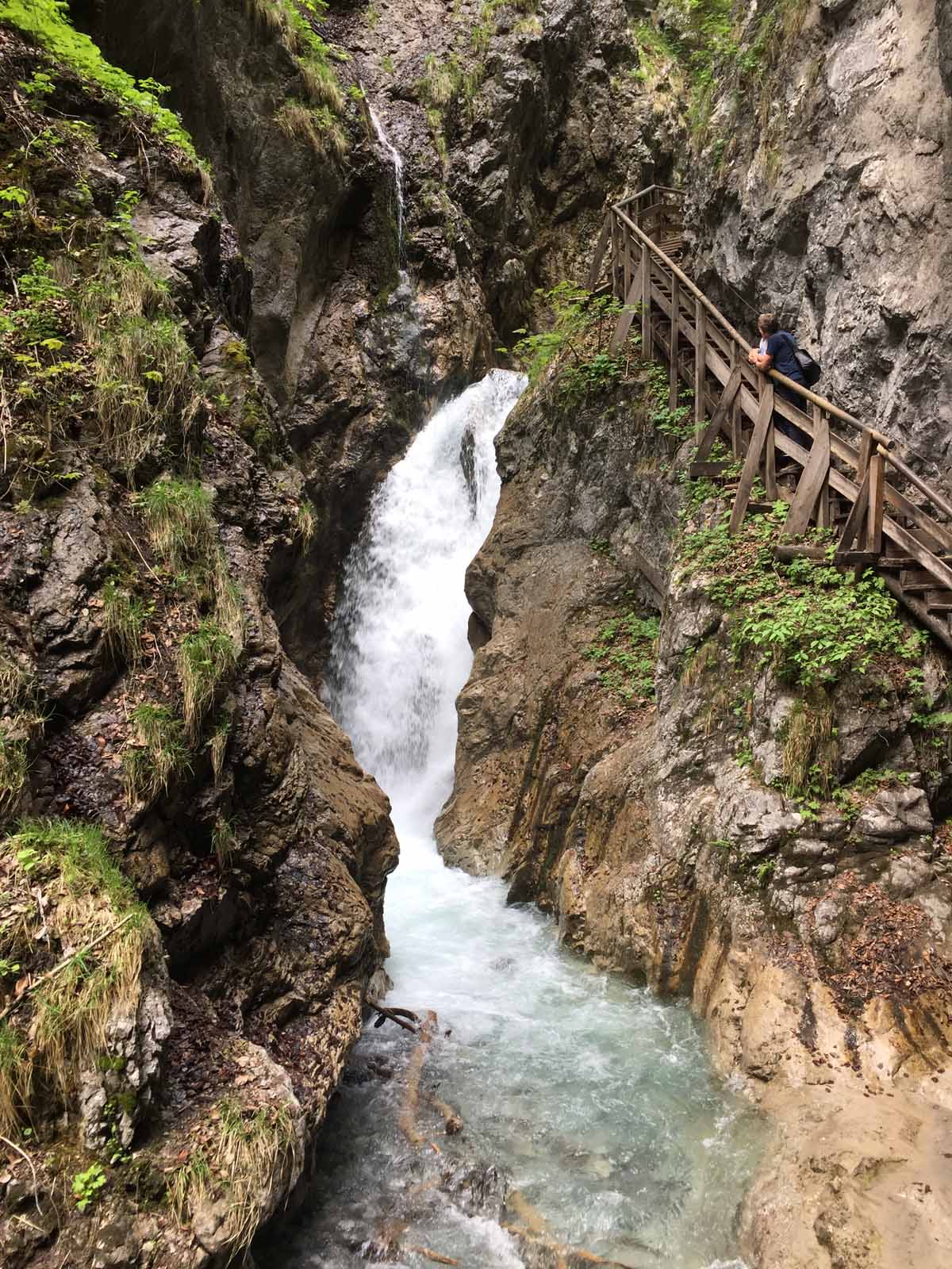 Bald erreichen wir das Ende der eigentlichen Klamm und wandern weiter Richtung St. Georgenberg. Imposant thront das Kloster über dem Talschluss.
