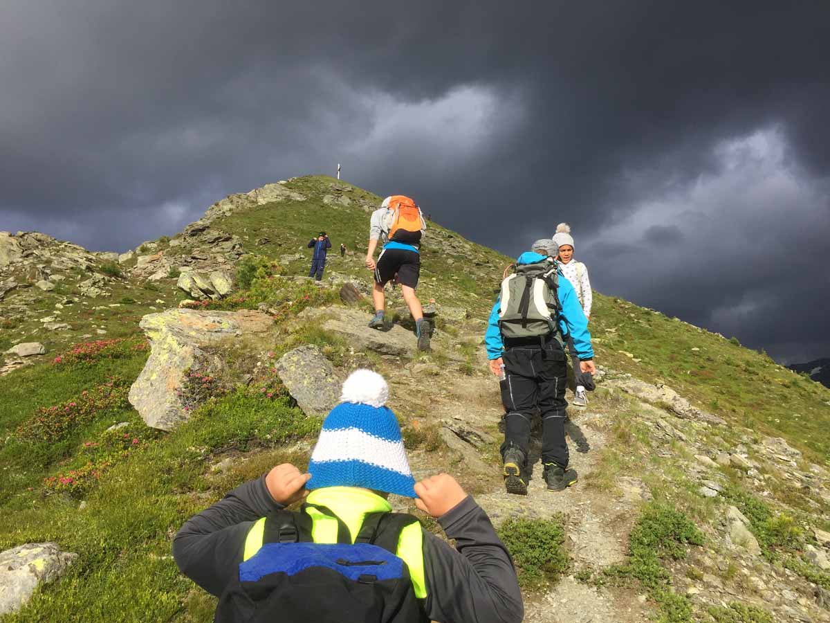 Die Kinder sind guter Dinge und marschieren mit raschem Schritt hinauf zum Gipfel. Der Eine oder Andere braucht dann auch mal eine kleine Motivation, aber man muss wirklich sagen, daß die Kinder sehr brav marschieren.