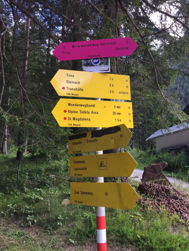 Letztes Jahr bin ich schon mal mit den Kids auf dem Weg zum wunderschönen St. Magdalena im Gschnitztal gewesen. Leider hat uns damals der Regen den Aufstieg verdrossen. Beim Runtergehen haben wir gesehen, dass hier gerade ein neuer Klettersteig im Werden ist. Und den wollen wir heute begehen.