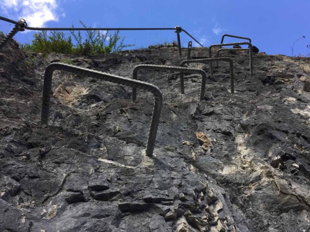 Insgesamt ist die Anlage vorbildlich gebaut, überall sind bombenfeste Sicherungen und wenns mal kurz ein wenig trittarm wird, sind Bügel montiert. Trotzdem, mit meinen Kindern möchte ich hier nicht gehen müssen, allein manche Stufe fordert die Dehnkraft meiner alten Gelenke und Knochen bis zum Äußersten… ob das das Alter oder der Abstand der Tritte ist? Oder einfach nur der fehlende Blick fürs Detail? Wer weiß…
