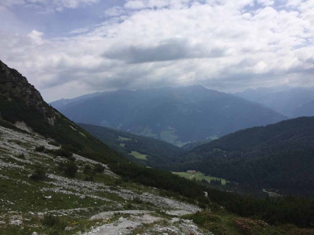 Am Serlesjöchl machen wir nochmals eine kurze Pause, dann marschieren wir wieder los. Nächstes Ziel wird Maria Waldrast sein, dort werden wir uns was gönnen.