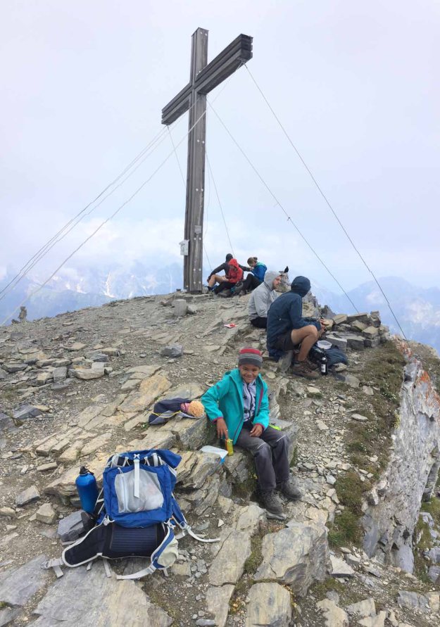 Die Freude steht Letu ins Gesicht geschrieben, aber auch ein wenig Müdigkeit. Der Gipfel der Serles (2.717m) ist erreicht.