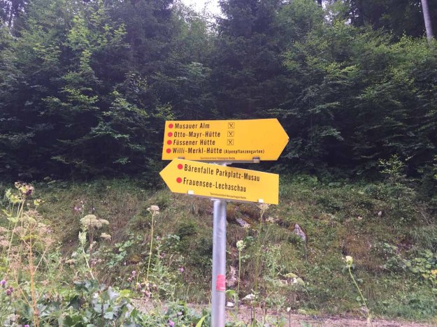 Der Spaziergang zur Willy-Merkl-Hütte und zur Füssener Hütte ist kurz und spaßig. Wir versuchen noch einen Geocache zu bergen, leider haben wir uns am Platz vertan, daher ist die Lust dann auch irgendwann nicht mehr da. Lieber genießen wir die Aussicht…