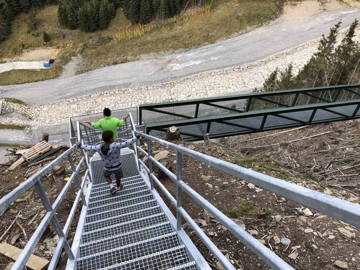 Obwohl sicher, sind manche Konstruktionen doch mit einem gewissen Nervenkitzel verbunden. Die Luft unter den Füßen scheint nicht enden zu wollen.
