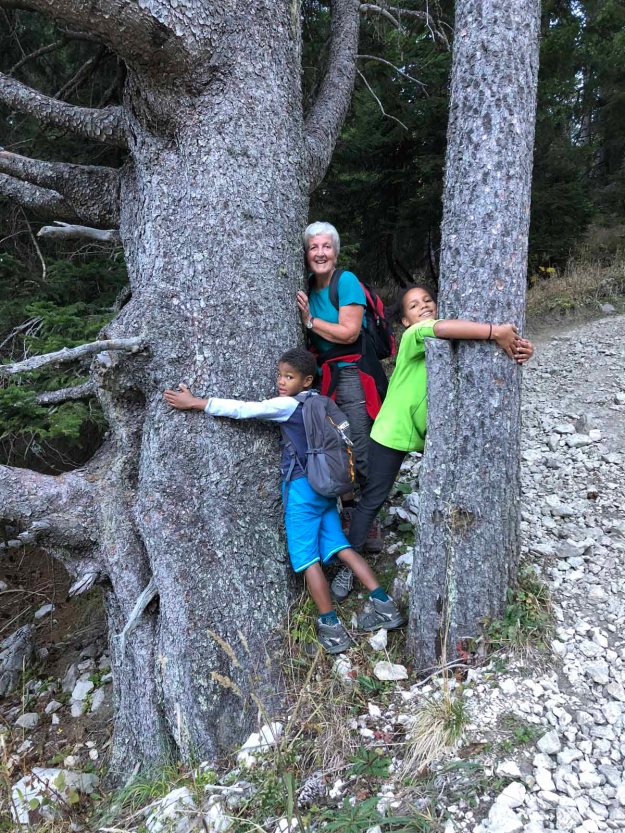 Wir starten zuerst ein Stück auf dem Forstweg, dann queren wir zum viel schöneren Steig auf den Säuling, der sehr angenehm durch den Wald führt. Der Wald hat ein paar extrem alte Bäume aufzuweisen. Die Oma erinnert sich noch an Zeiten, als der Säuling fast ohne Bäume war…