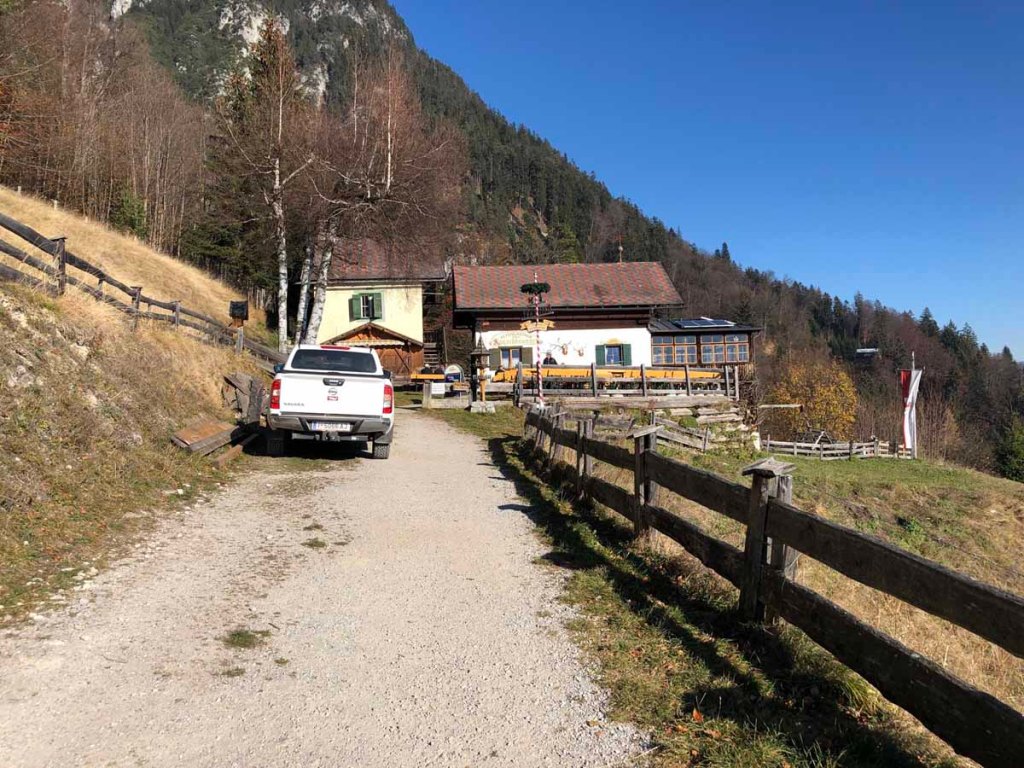 Bald erreiche ich wieder den Parkplatz meines Drahtesels. Nun heißt es noch nach Hause strampeln. Das ist doch noch ein Stück, aber bei dem Wetter macht es richtig Spaß. Noch einmal dreh ich mich um und sag dem Karwendelpark für heute Adé…