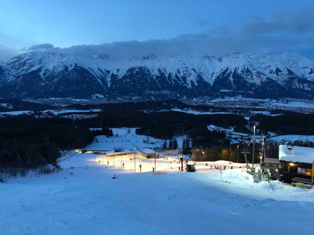 Am Donnerstag ist hier immer Nachtskilauf, daher sind wir nicht alleine… aber das ist man am Patscherkofel nie, Pilgerströme ziehen hier, speziell am Donnerstag, dem Skitourentag, hinauf zum Schutzhaus. Die Patscher Alm ist kürzer und weniger überlaufen…