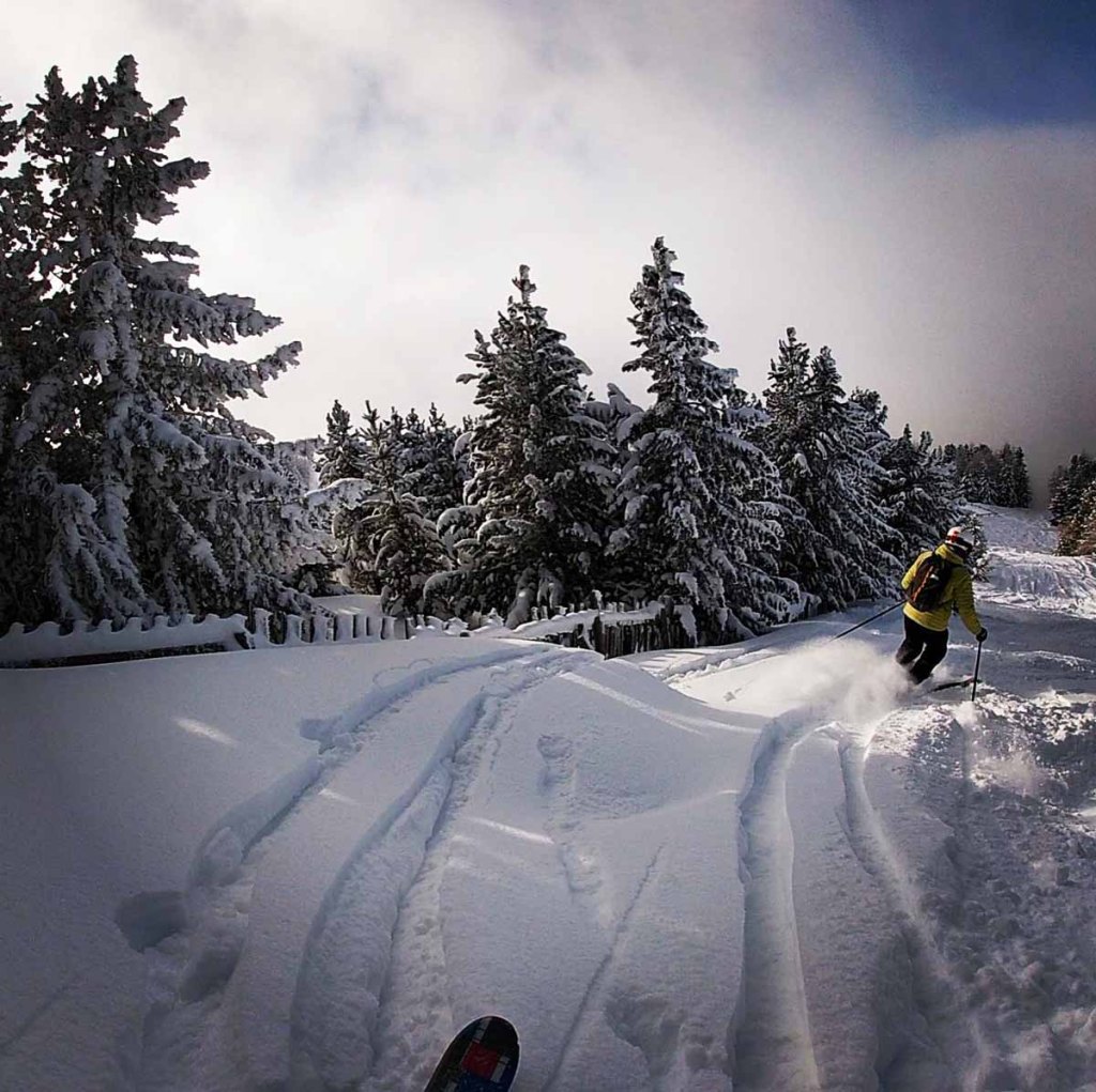 Wir setzen unsere Abfahrten dann, zumindest wo genug Schnee liegt, abseits der Pisten im feinen Powder. Das ist lustig und macht die kurze Abfahrt dann doch erträglich…
